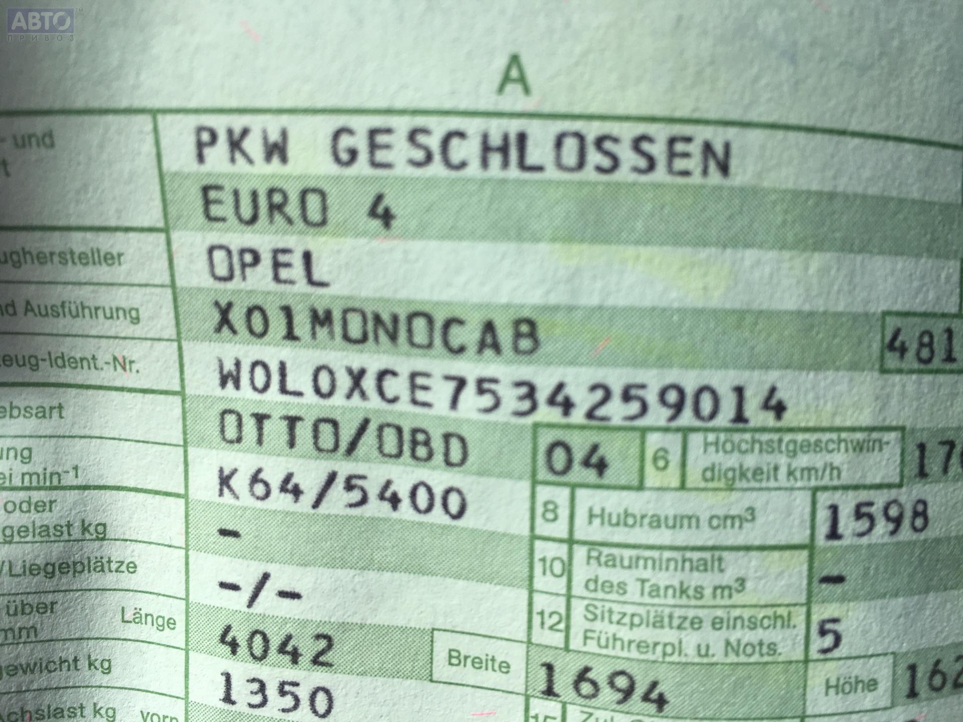 | Марка / Модель / Год: | Opel Meriva A (2003-2010) 2003 |