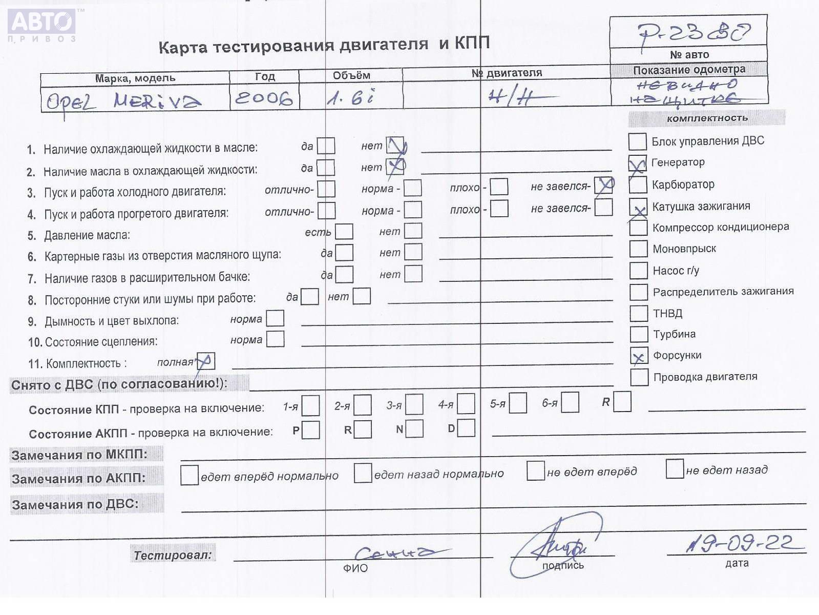 | Марка / Модель / Год: | Opel Meriva A (2003-2010) 2006 |