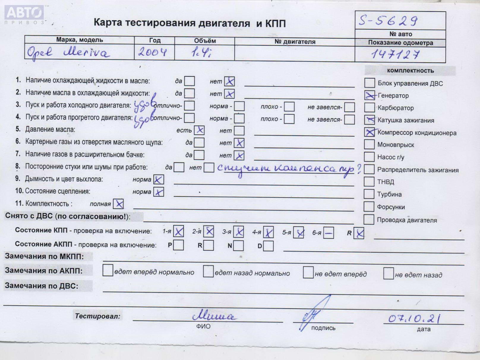 | Марка / Модель / Год: | Opel Meriva A (2003-2010) 2004 |