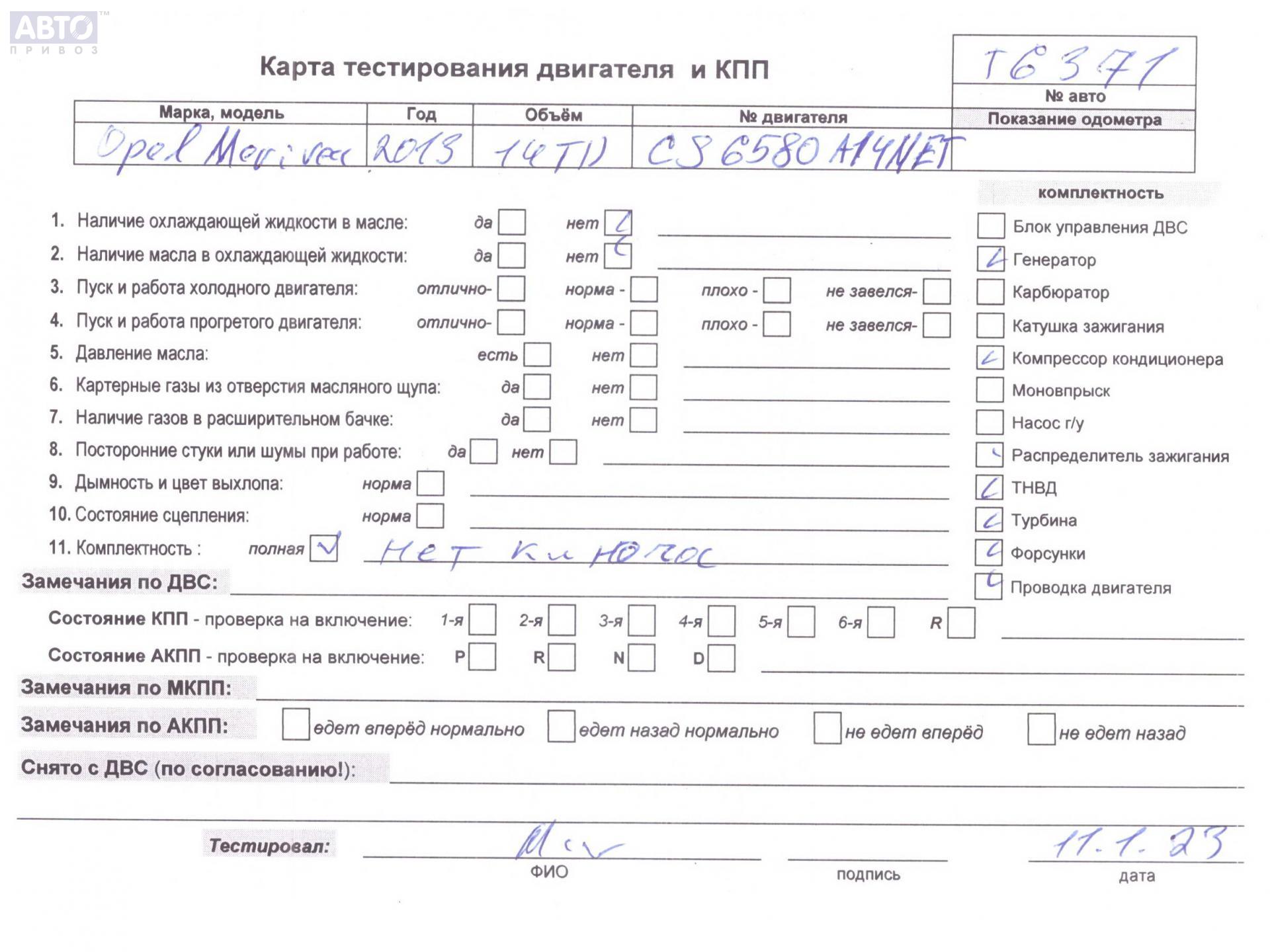 | Марка / Модель / Год: | Opel Meriva B (2010-2017) 2013 |