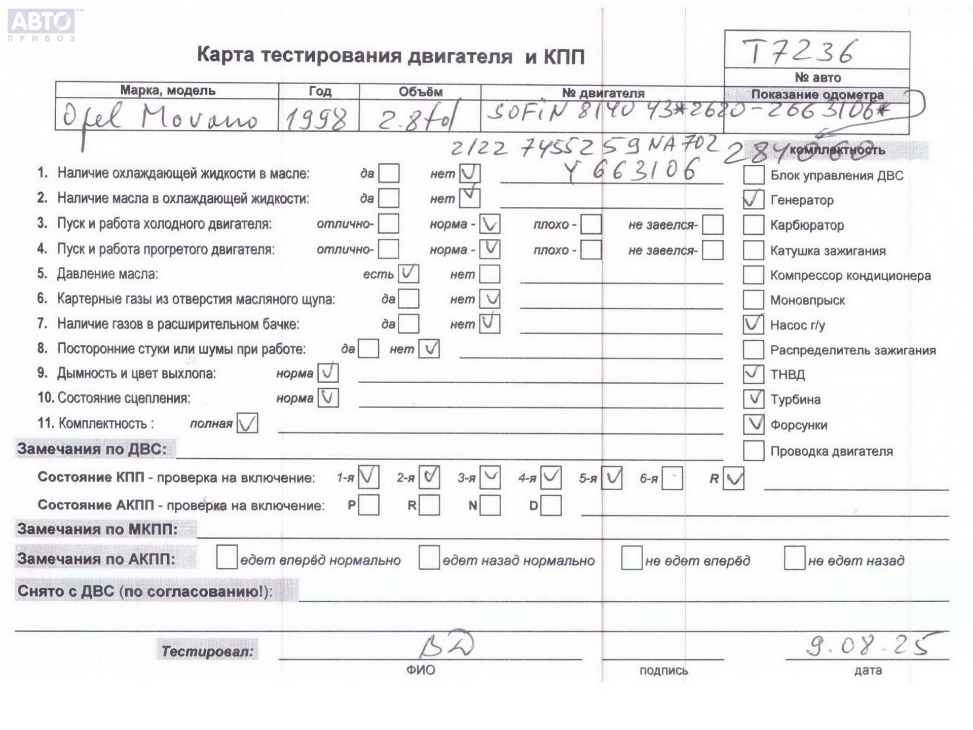| Марка / Модель / Год: | Opel Movano A (1998-2010) 1998 |