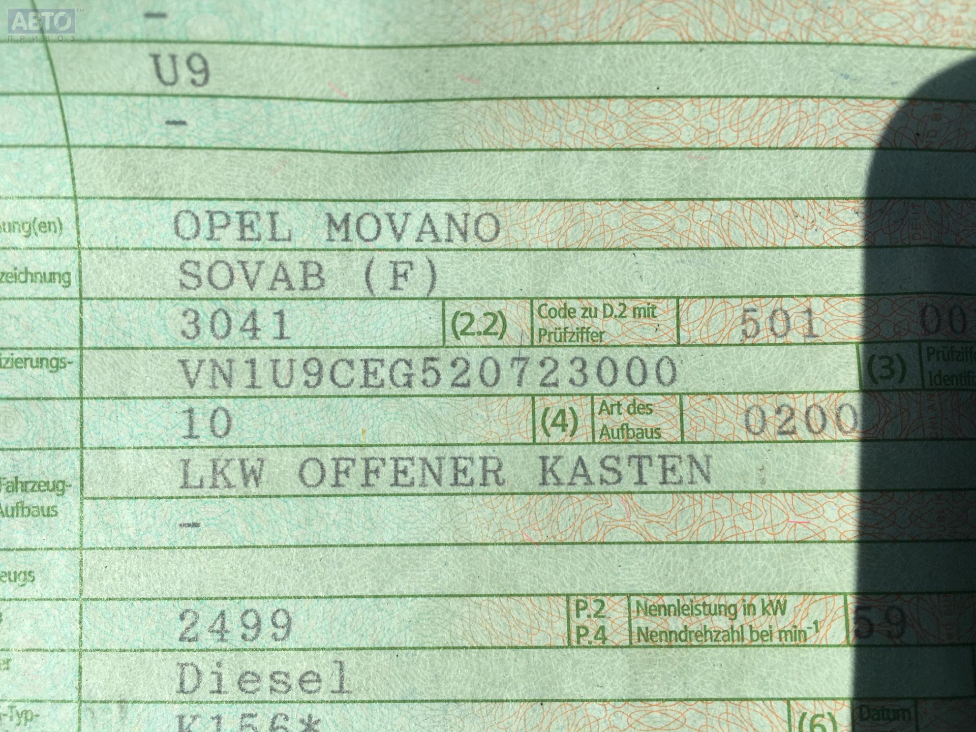 | Марка / Модель / Год: | Opel Movano A (1998-2010) 1999 |