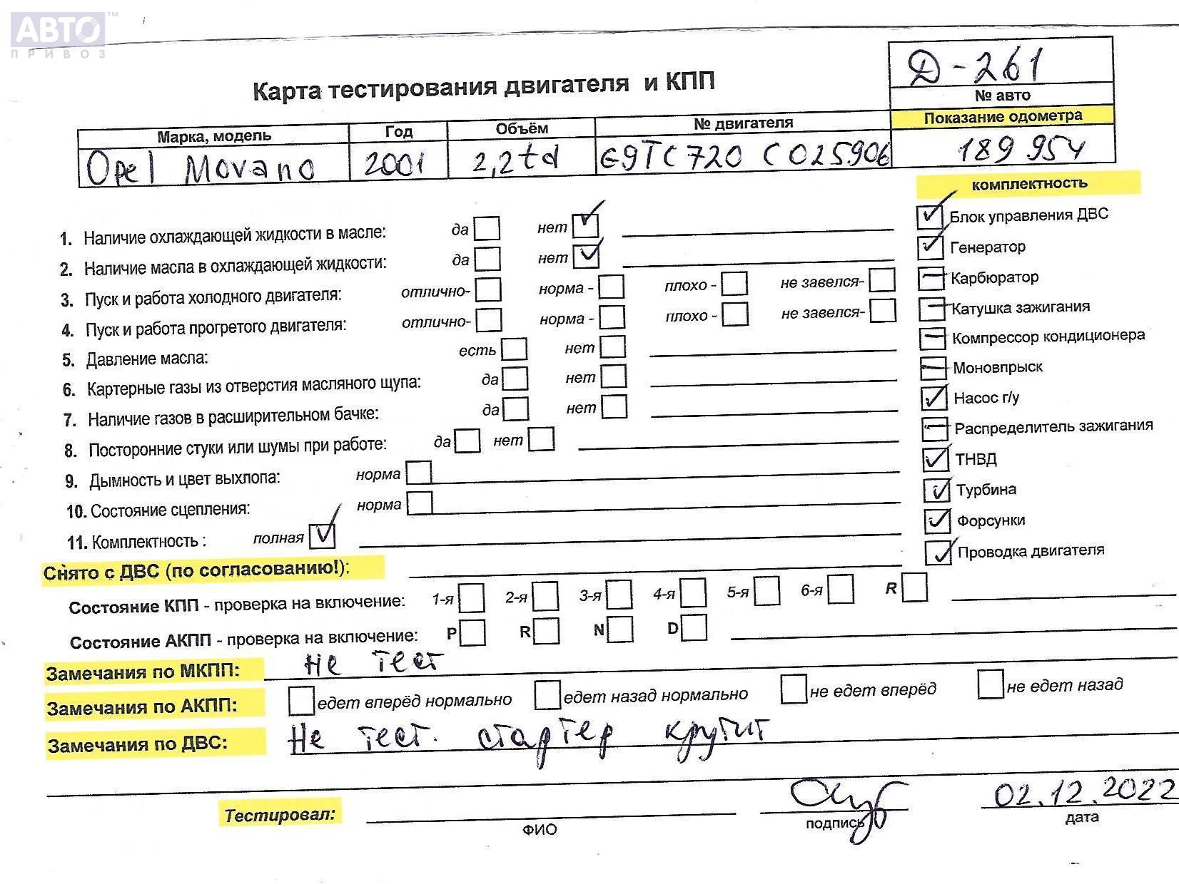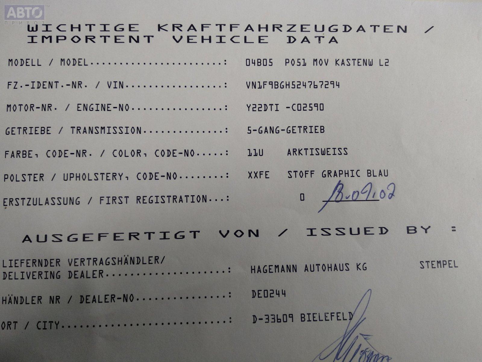 | Марка / Модель / Год: | Opel Movano A (1998-2010) 2001 |