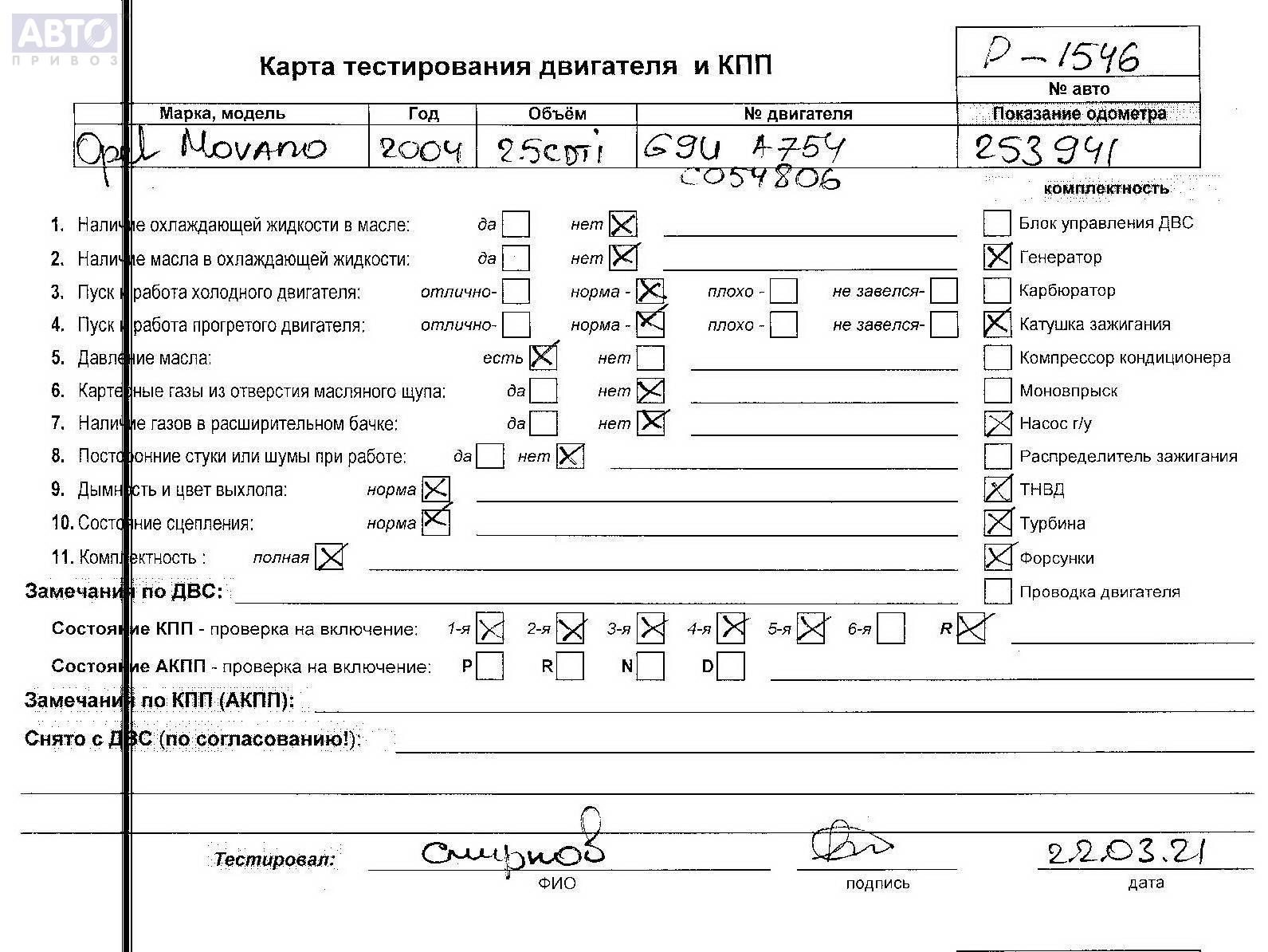 | Марка / Модель / Год: | Opel Movano A (1998-2010) 2004 |