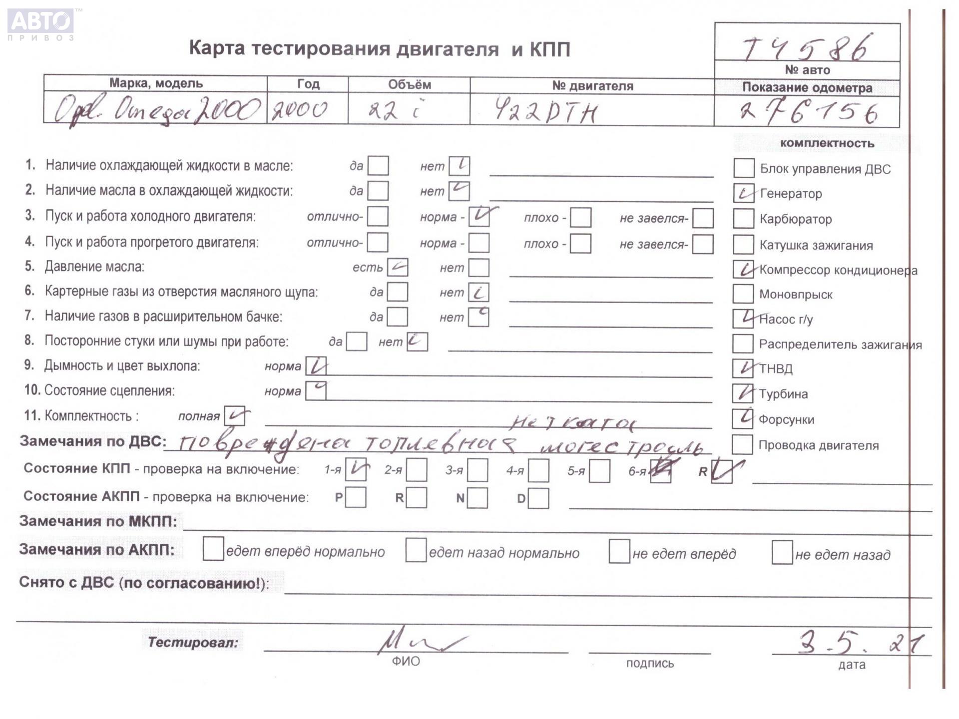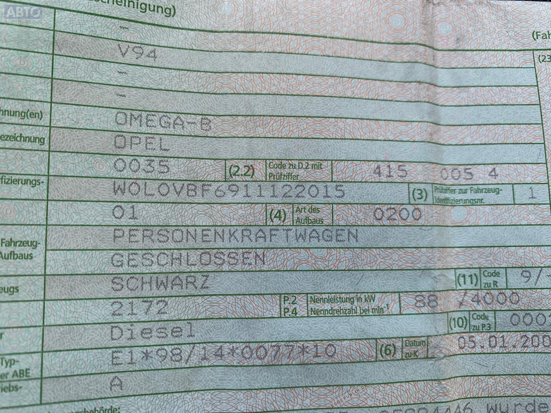 | Марка / Модель / Год: | Opel Omega B (1994-2003) 2001 |
