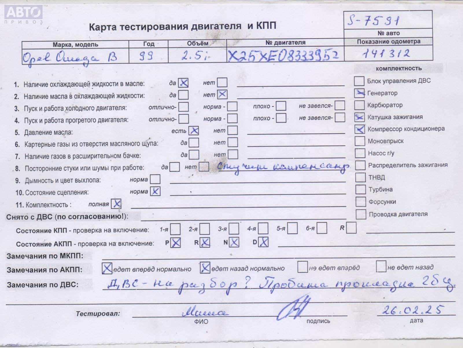 | Марка / Модель / Год: | Opel Omega B (1994-2003) 1999 |