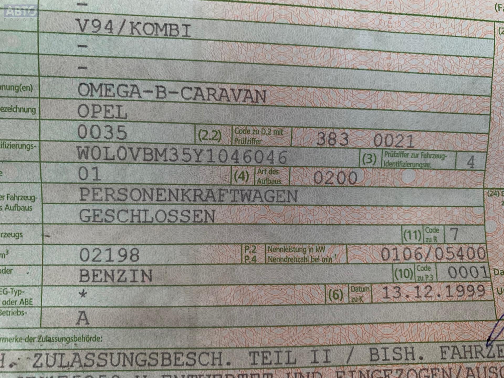 | Марка / Модель / Год: | Opel Omega B (1994-2003) 2000 |