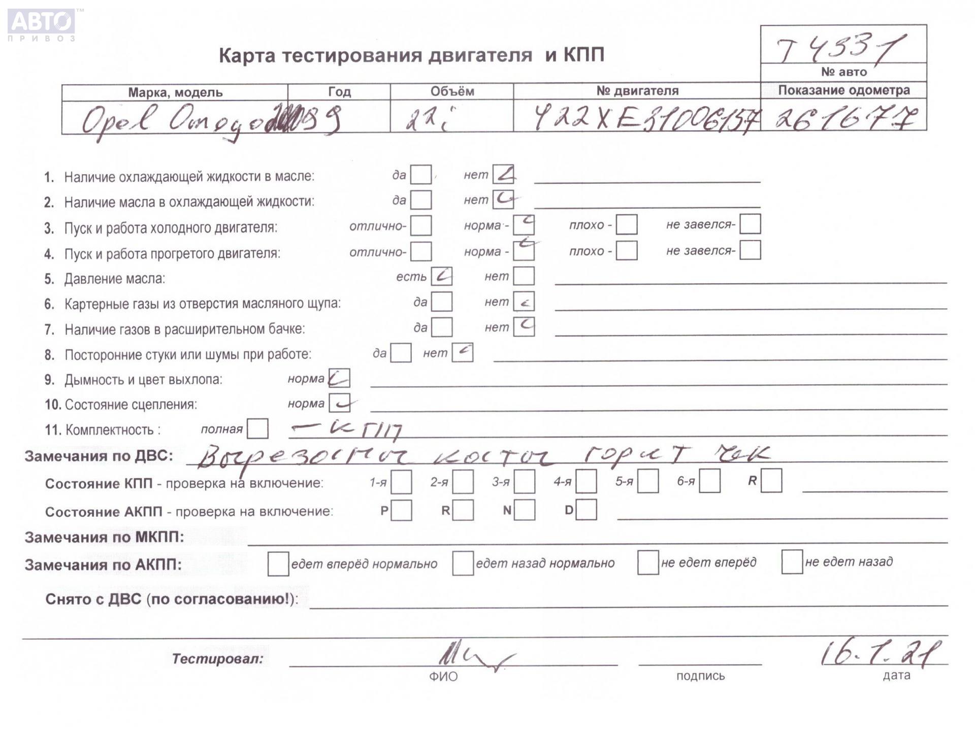 | Автомобиль / VIN: | T4331 W0L0VBM35Y1046046 |