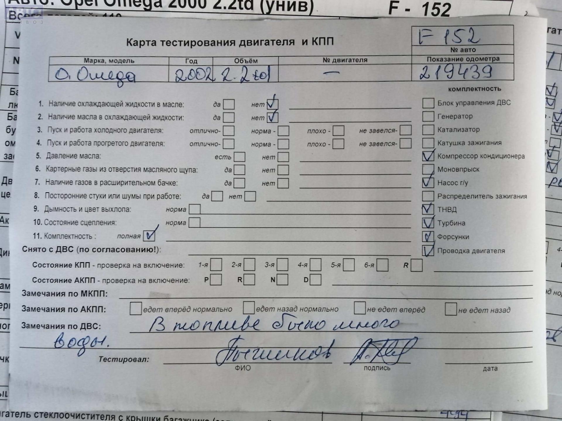 | Марка / Модель / Год: | Opel Omega B (1994-2003) 2002 |