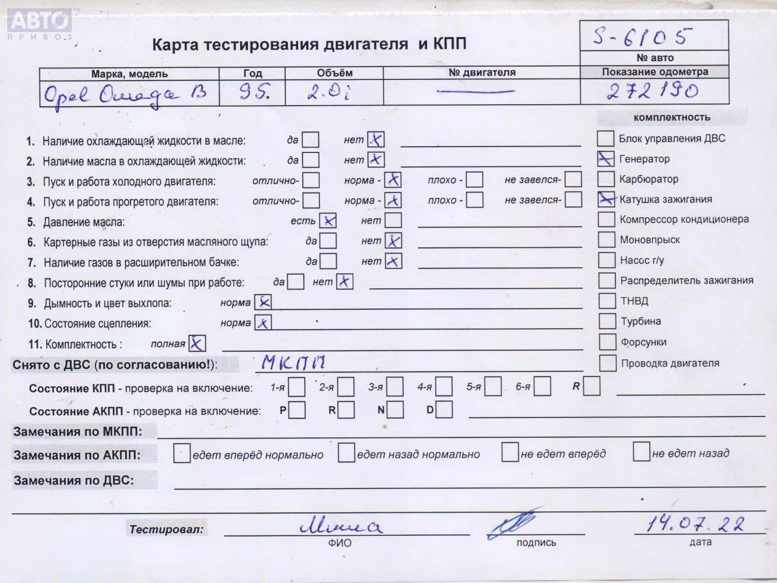 | Марка / Модель / Год: | Opel Omega B (1994-2003) 1995 |