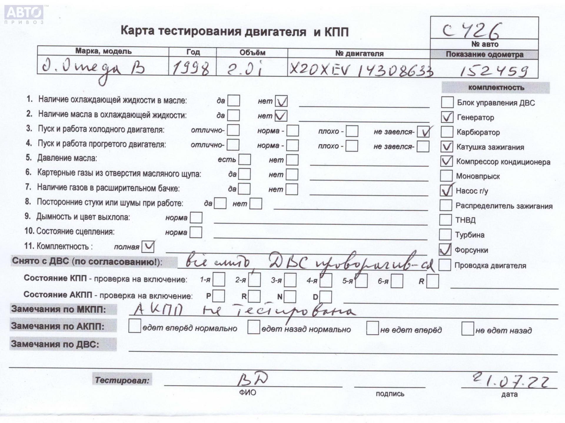 | Автомобиль / VIN: | C0426 W0L000021V1121029 |