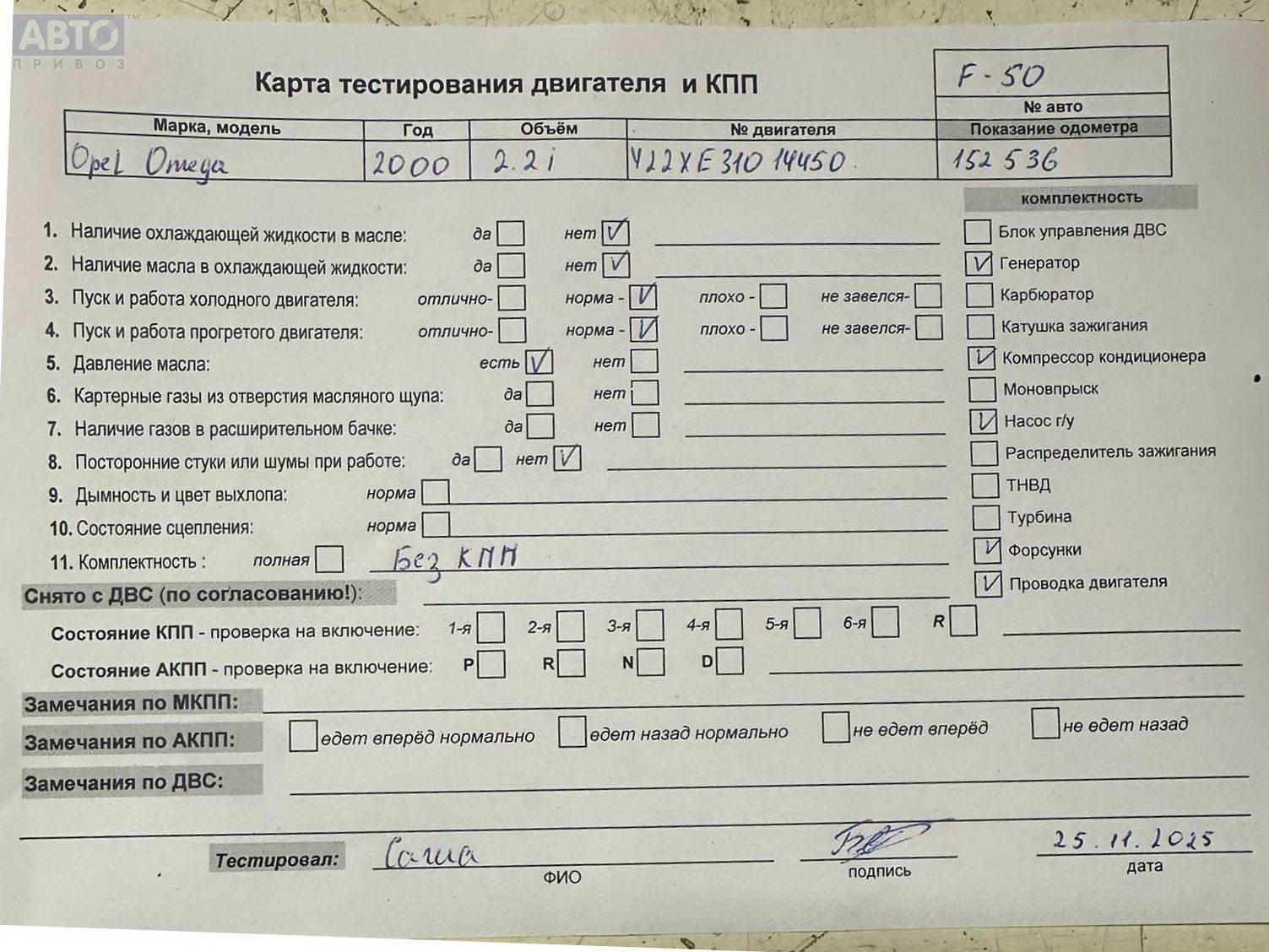 | Марка / Модель / Год: | Opel Omega B (1994-2003) 2000 |