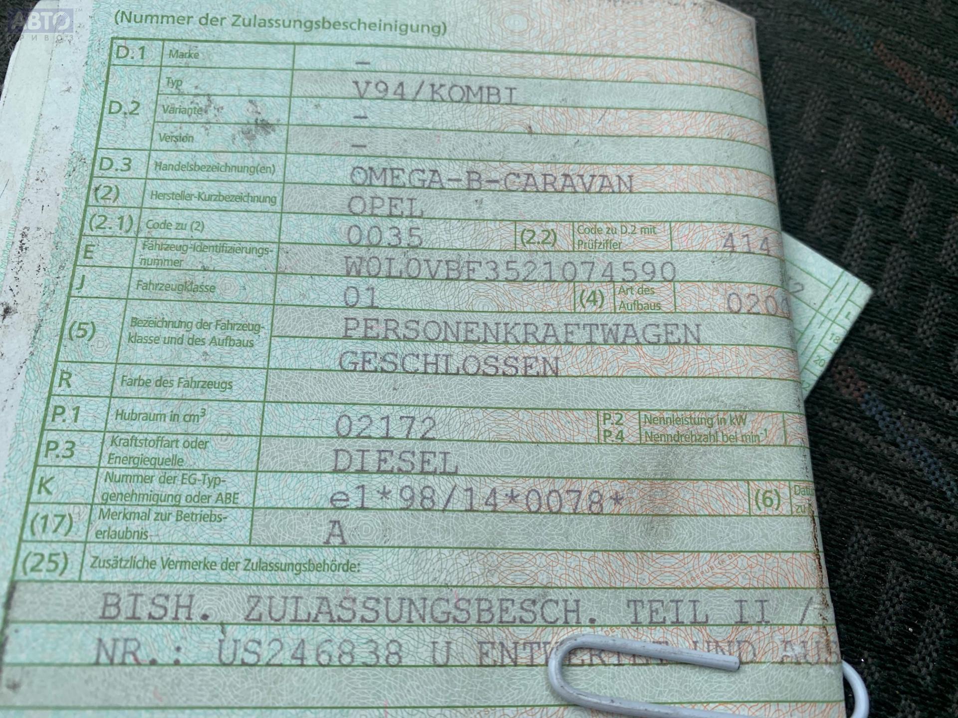 | Марка / Модель / Год: | Opel Omega B (1994-2003) 2002 |