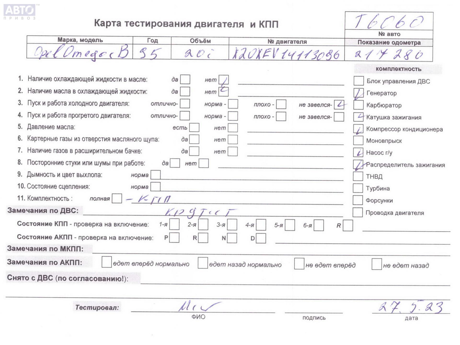 | Марка / Модель / Год: | Opel Omega B (1994-2003) 1995 |
