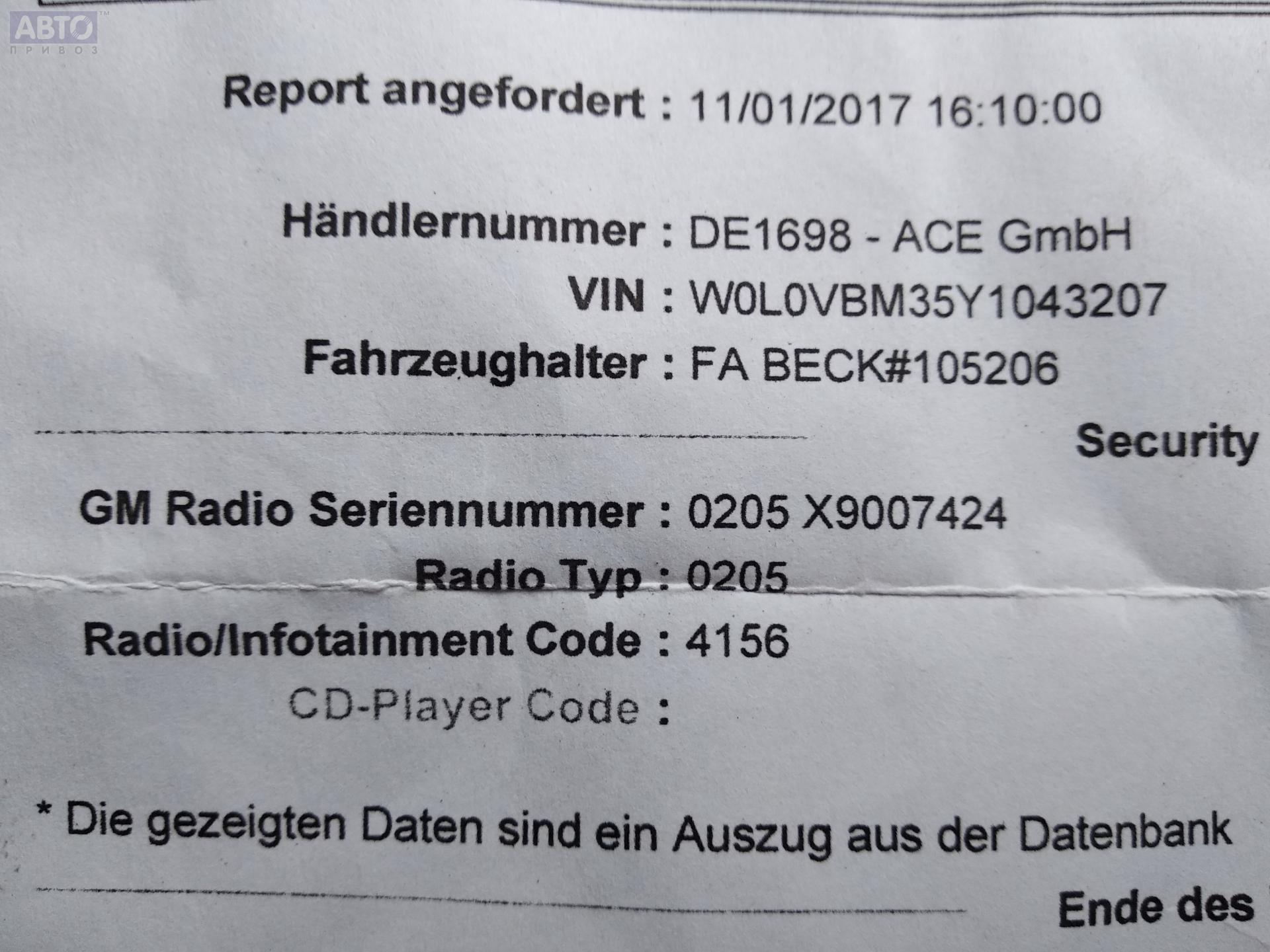 | Автомобиль / VIN: | L9012 W0L0VBM35Y1043207 |
