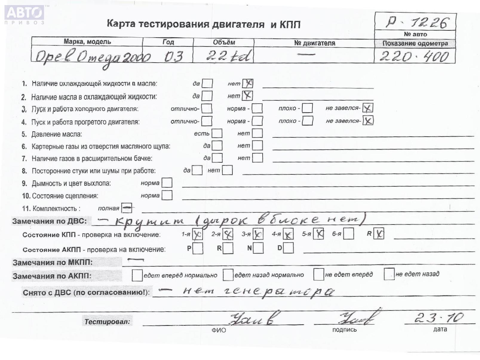 | Автомобиль / VIN: | P1226 W0L0VBF3531137545 |