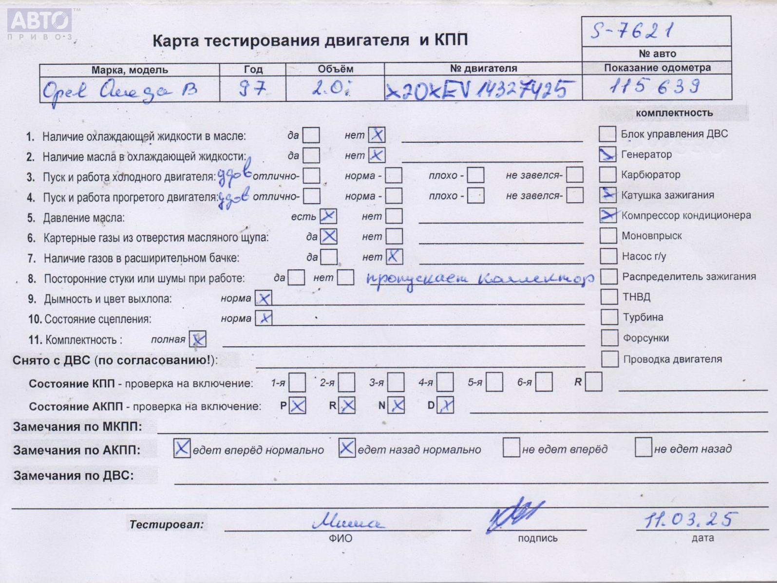 | Марка / Модель / Год: | Opel Omega B (1994-2003) 1997 |