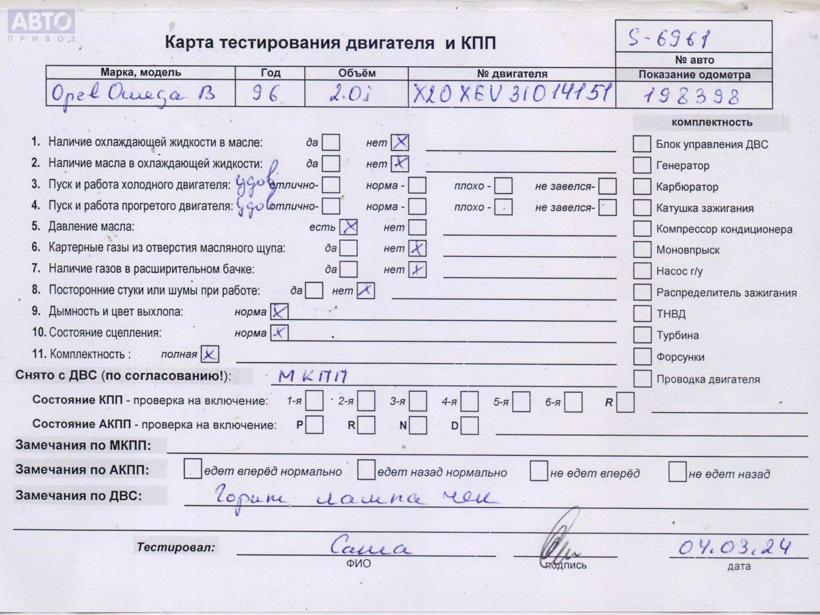 | Марка / Модель / Год: | Opel Omega B (1994-2003) 1996 |