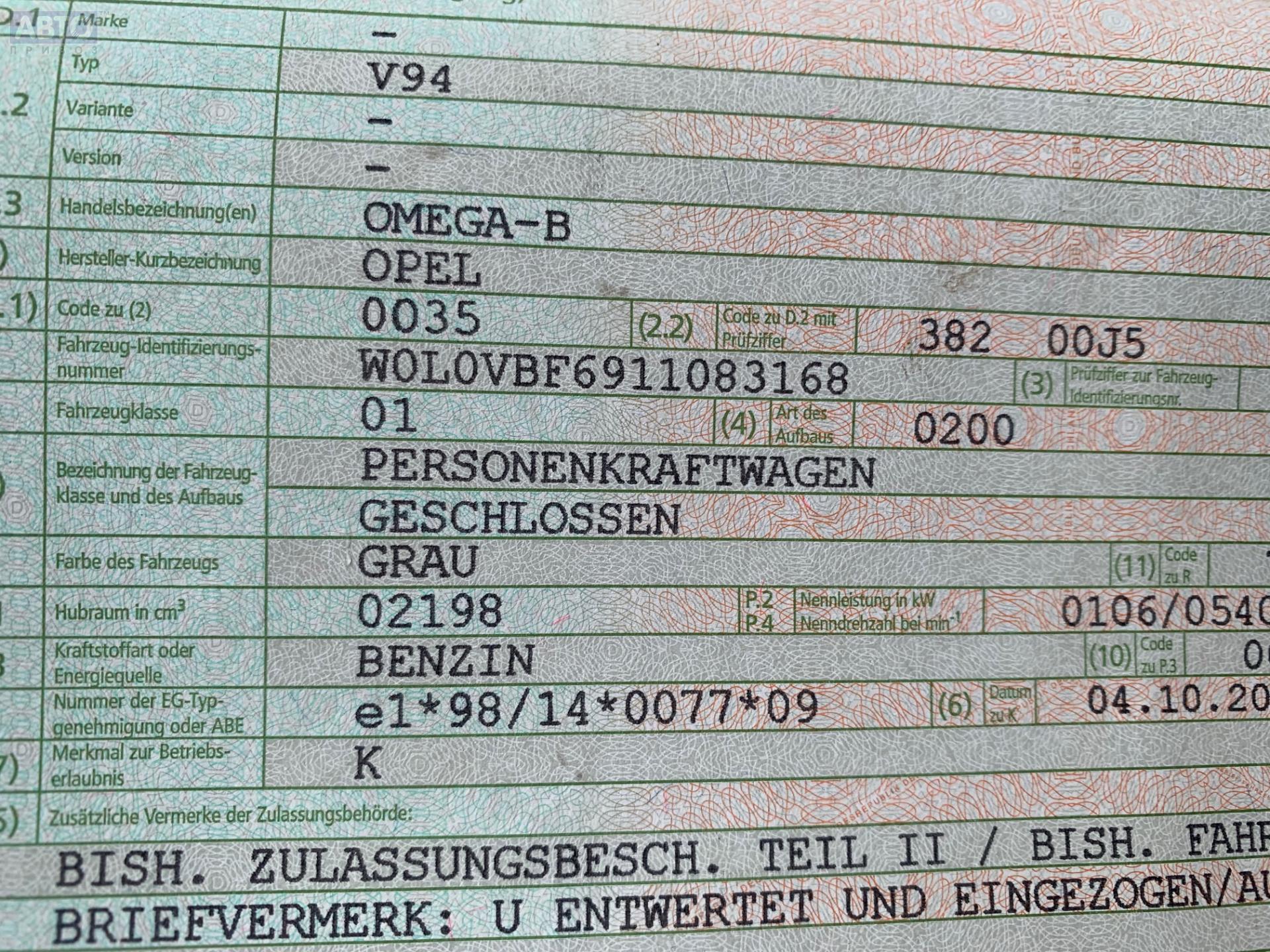 | Марка / Модель / Год: | Opel Omega B (1994-2003) 2000 |