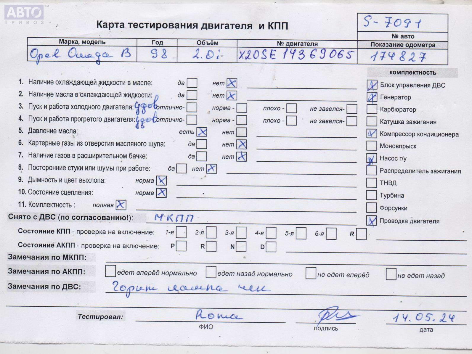 | Марка / Модель / Год: | Opel Omega B (1994-2003) 1998 |