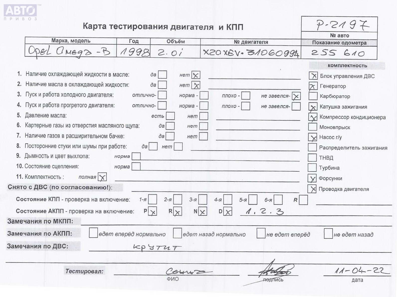 | Автомобиль / VIN: | P2197 W0L0VBF35X1054976 |