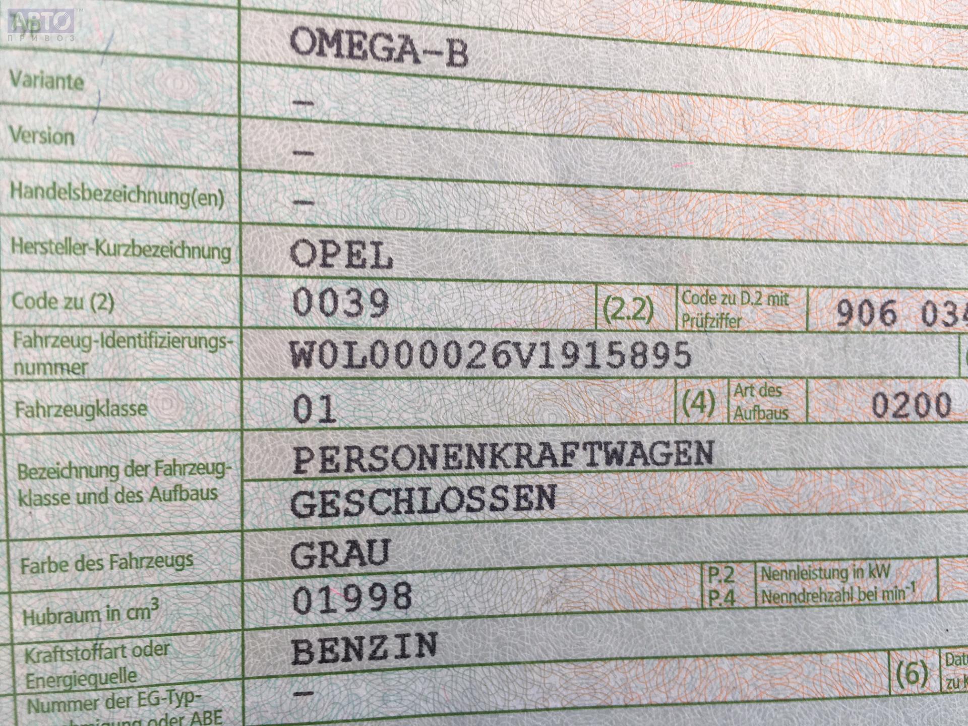 | Марка / Модель / Год: | Opel Omega B (1994-2003) 1997 |