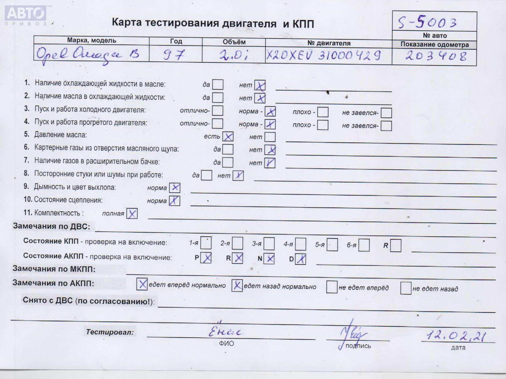 | Марка / Модель / Год: | Opel Omega B (1994-2003) 1997 |