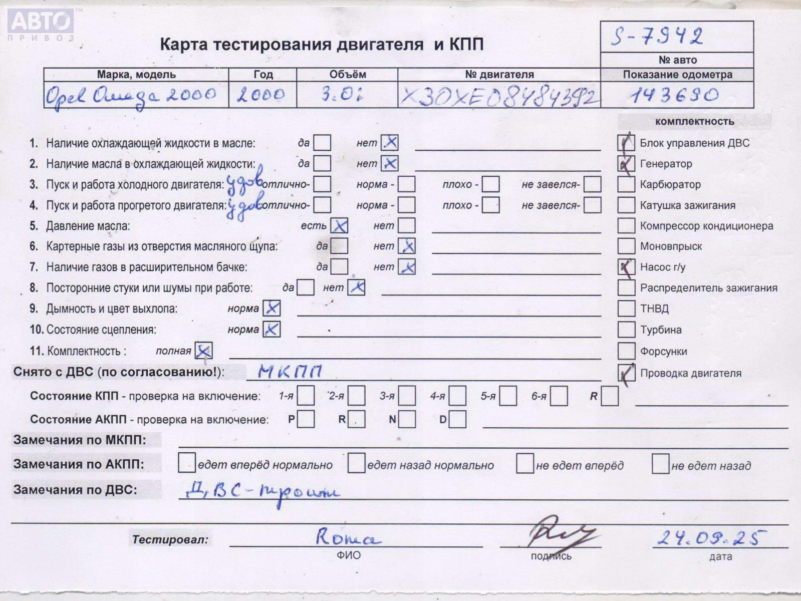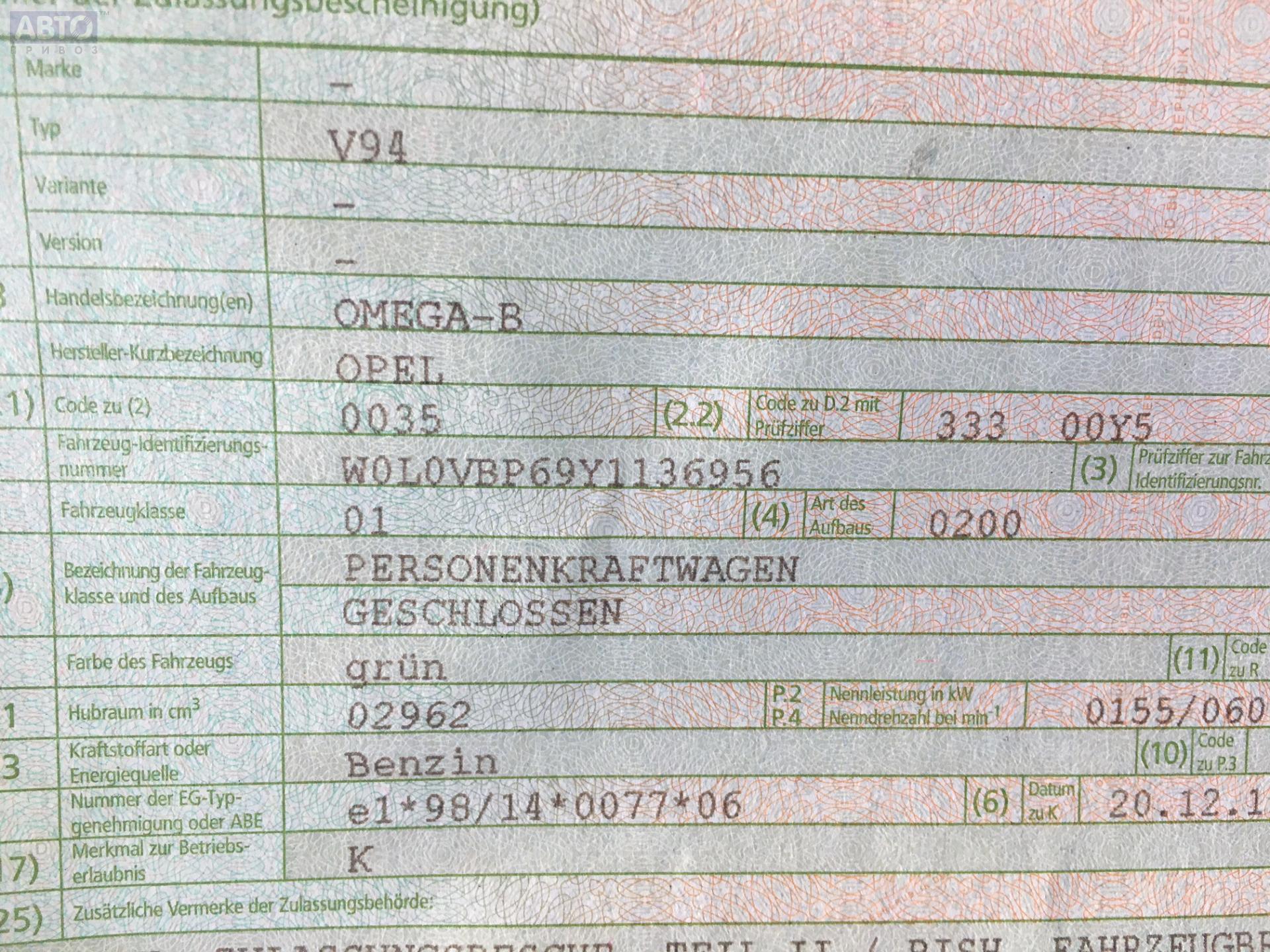 | Марка / Модель / Год: | Opel Omega B (1994-2003) 2000 |