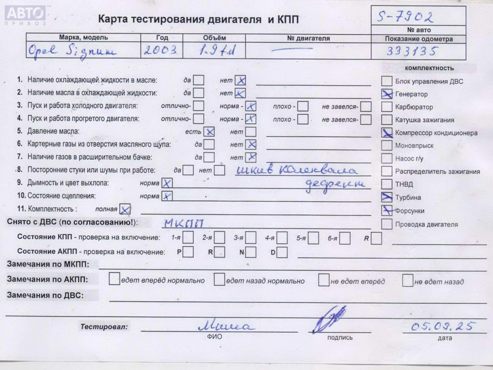 | Марка / Модель / Год: | Opel Signum (2003-2008) 2005 |