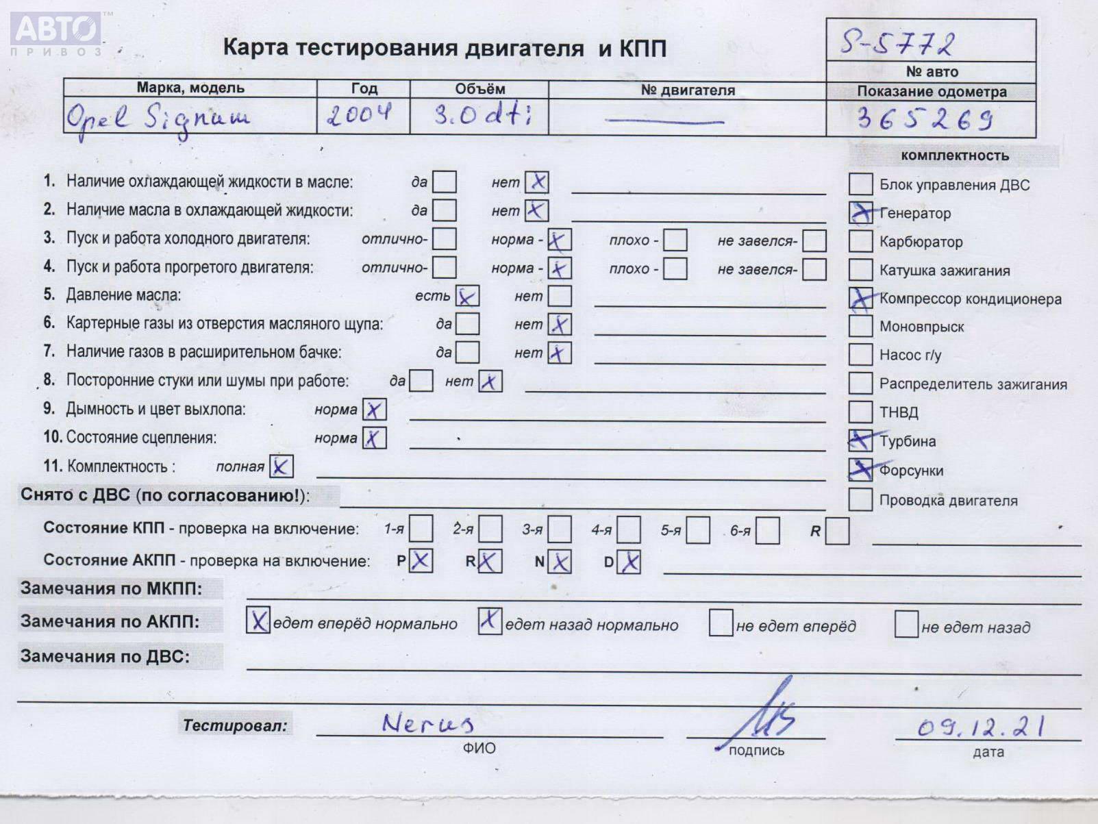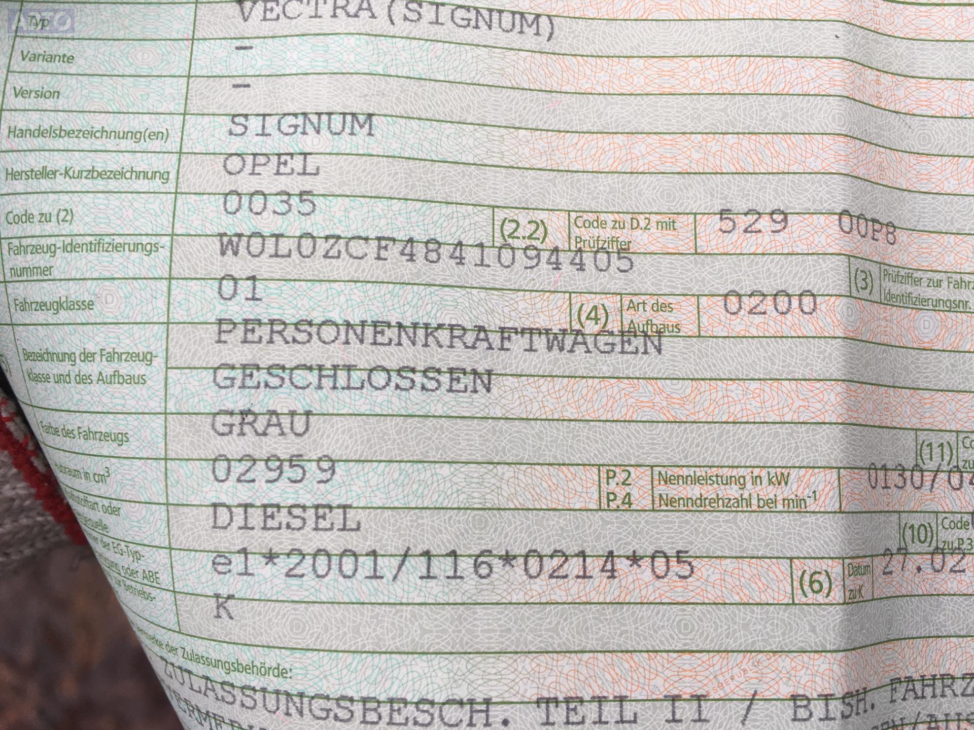 | Марка / Модель / Год: | Opel Signum (2003-2008) 2004 |