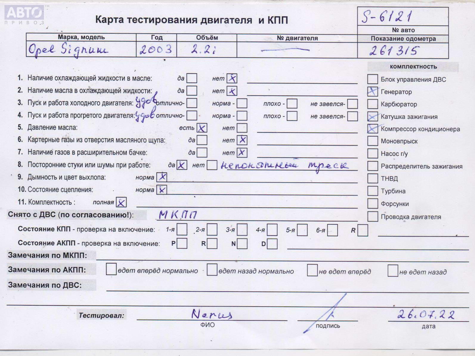 | Марка / Модель / Год: | Opel Signum (2003-2008) 2003 |