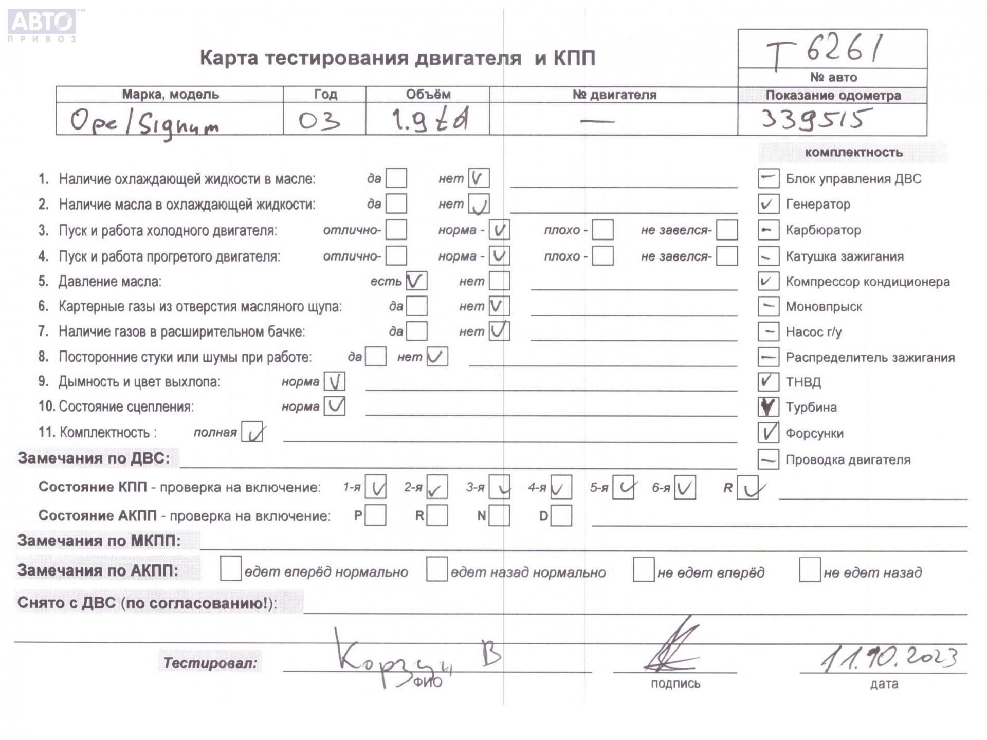 | Марка / Модель / Год: | Opel Signum (2003-2008) 2004 |