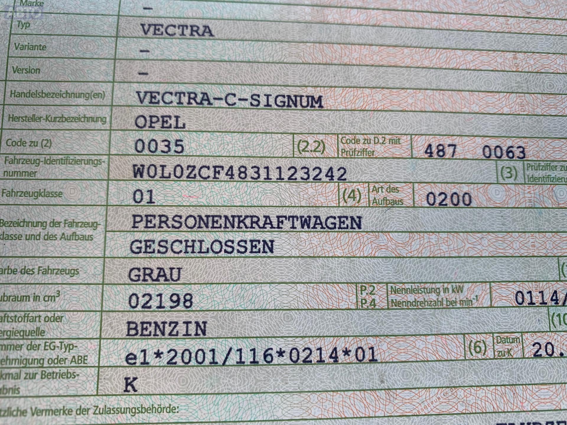 | Марка / Модель / Год: | Opel Signum (2003-2008) 2003 |