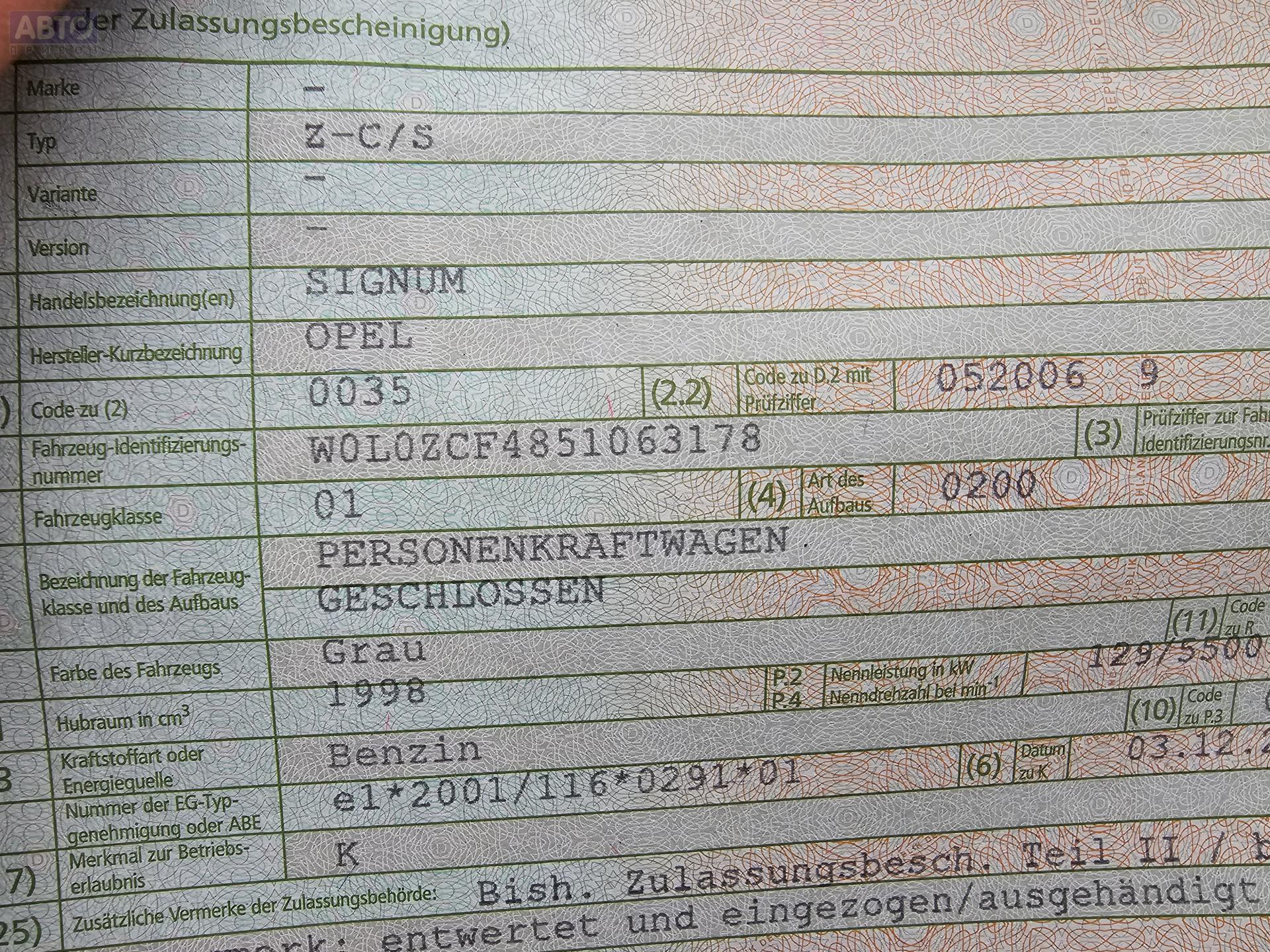 | Марка / Модель / Год: | Opel Signum (2003-2008) 2004 |