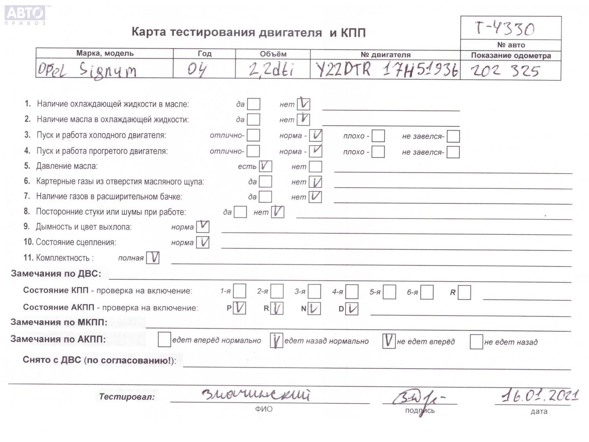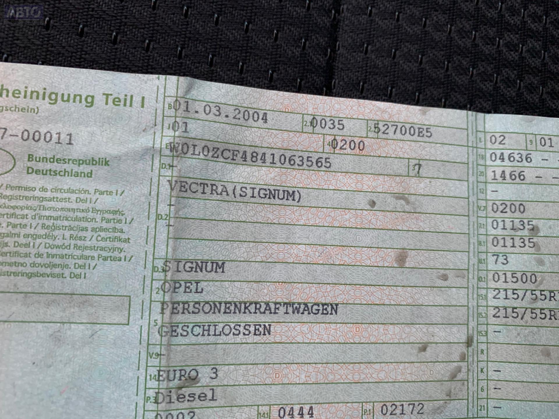 | Марка / Модель / Год: | Opel Signum (2003-2008) 2004 |