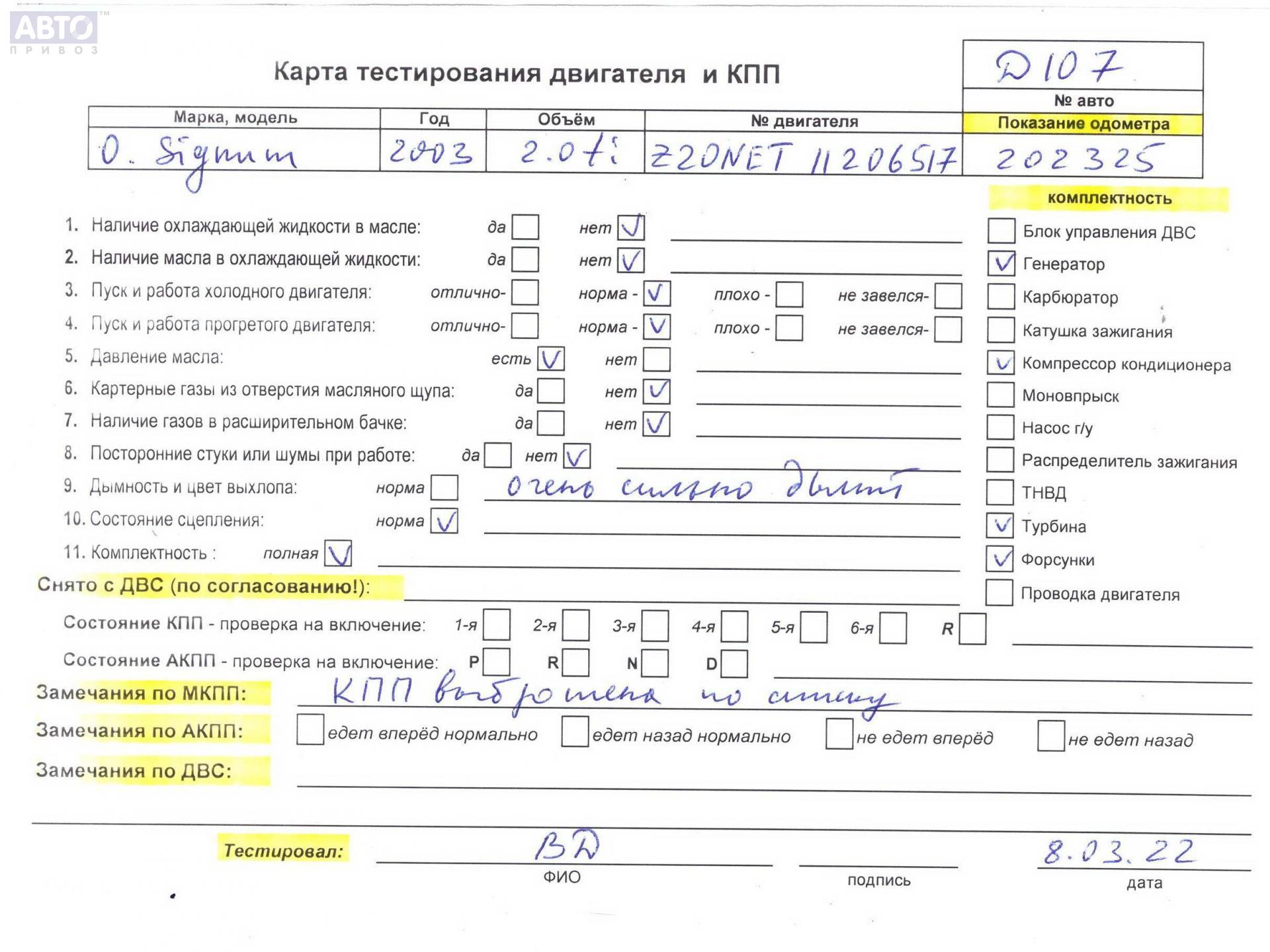 | Двигатель / КПП: | 2л Бензин Ti Мех. |