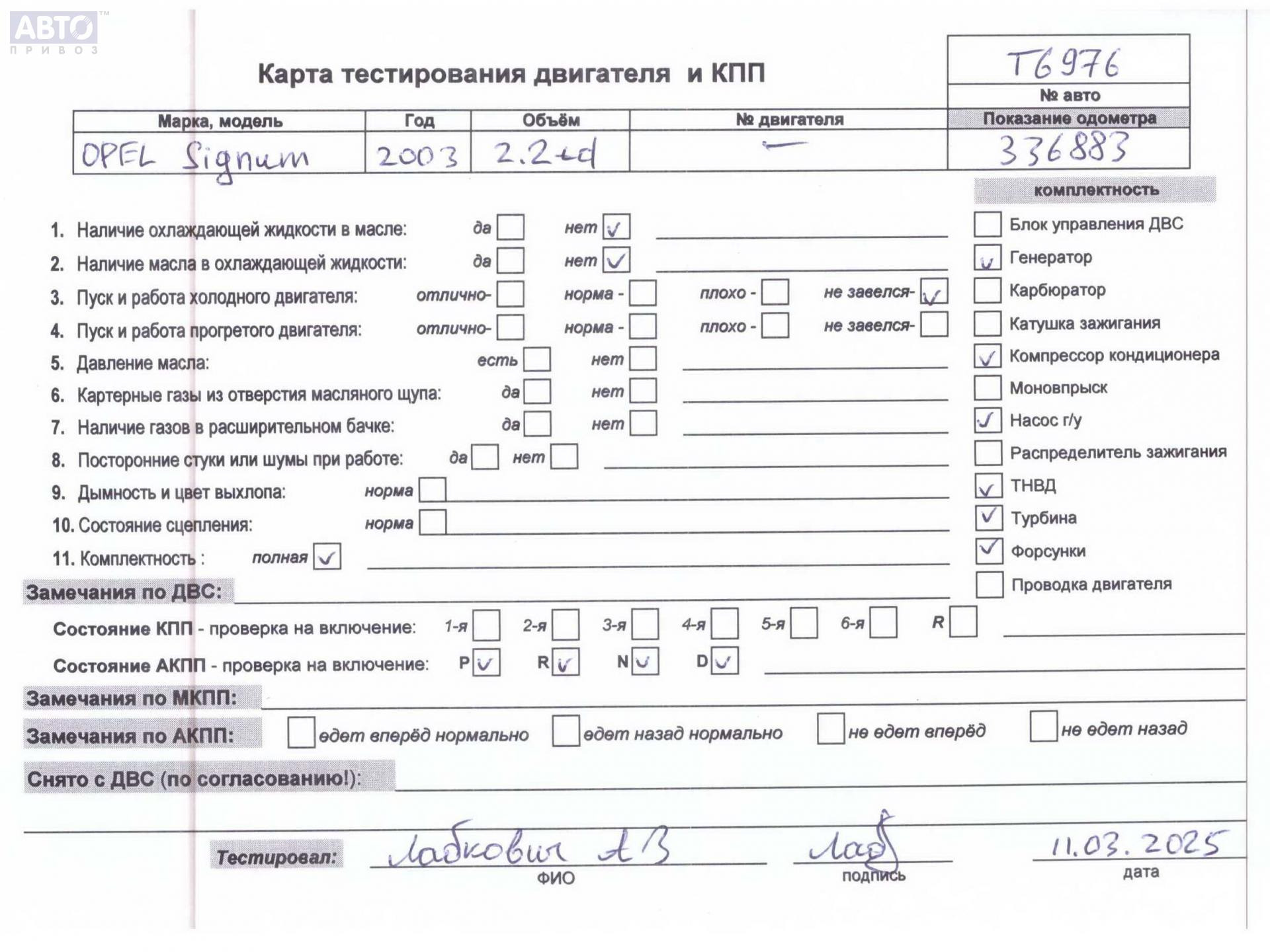| Марка / Модель / Год: | Opel Signum (2003-2008) 2003 |