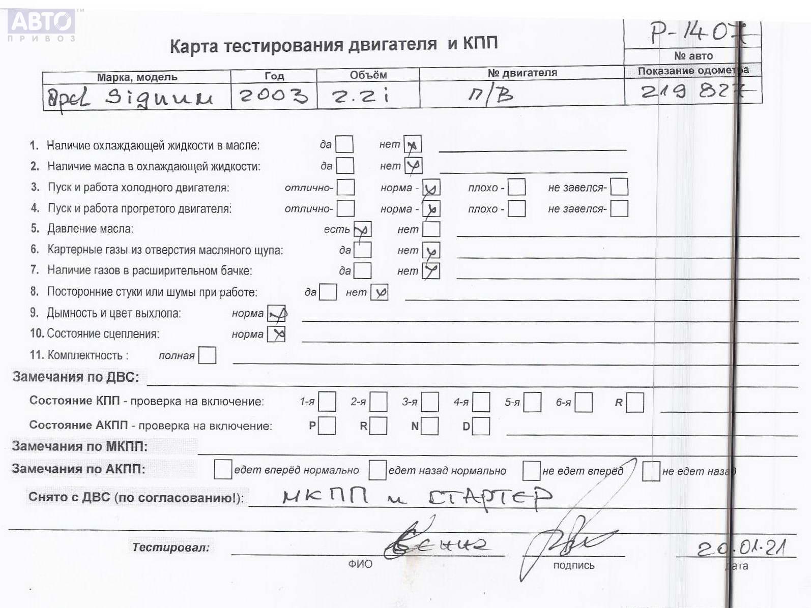 | Марка / Модель / Год: | Opel Signum (2003-2008) 2004 |