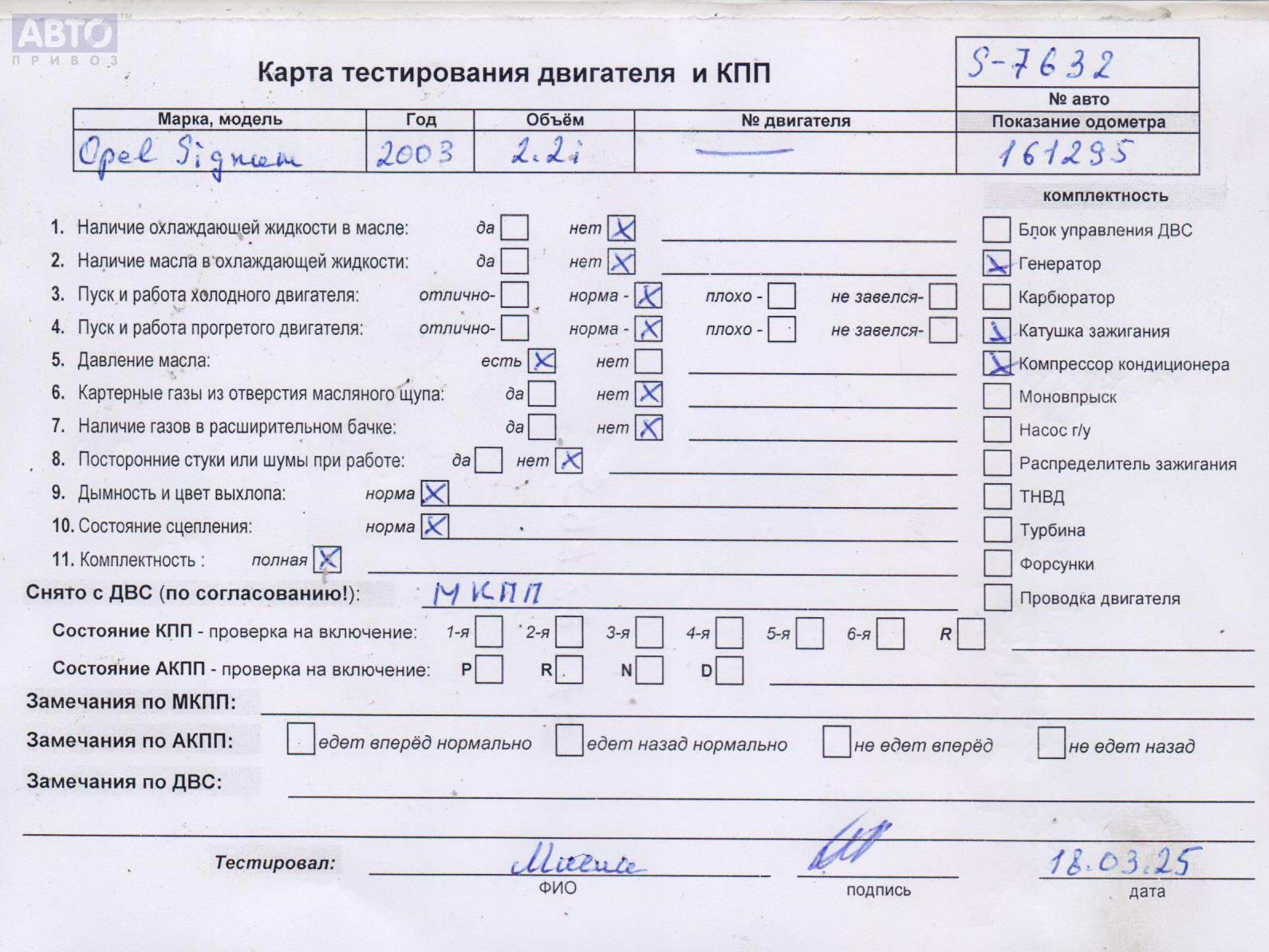 | Марка / Модель / Год: | Opel Signum (2003-2008) 2003 |