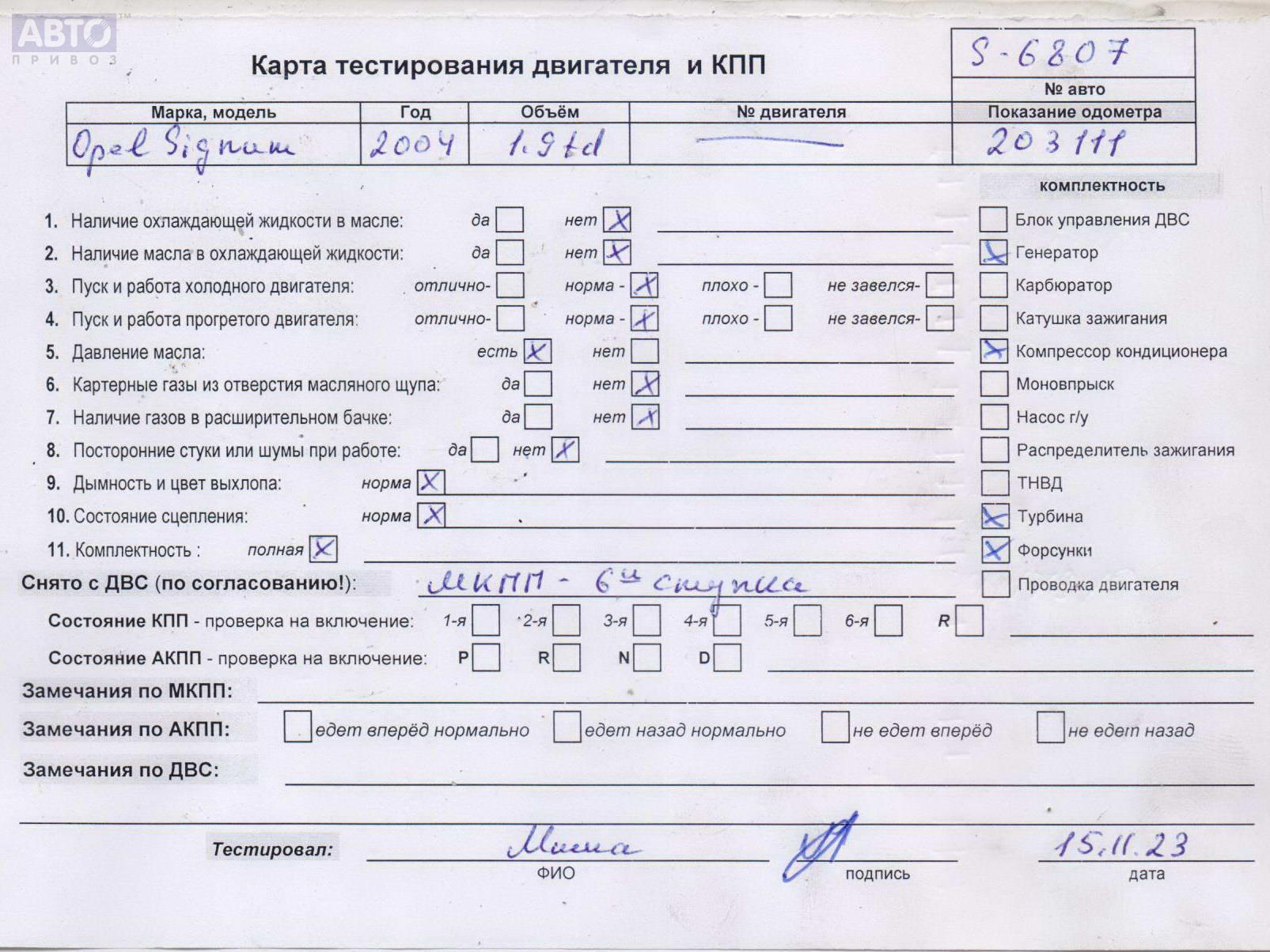 | Марка / Модель / Год: | Opel Signum (2003-2008) 2005 |