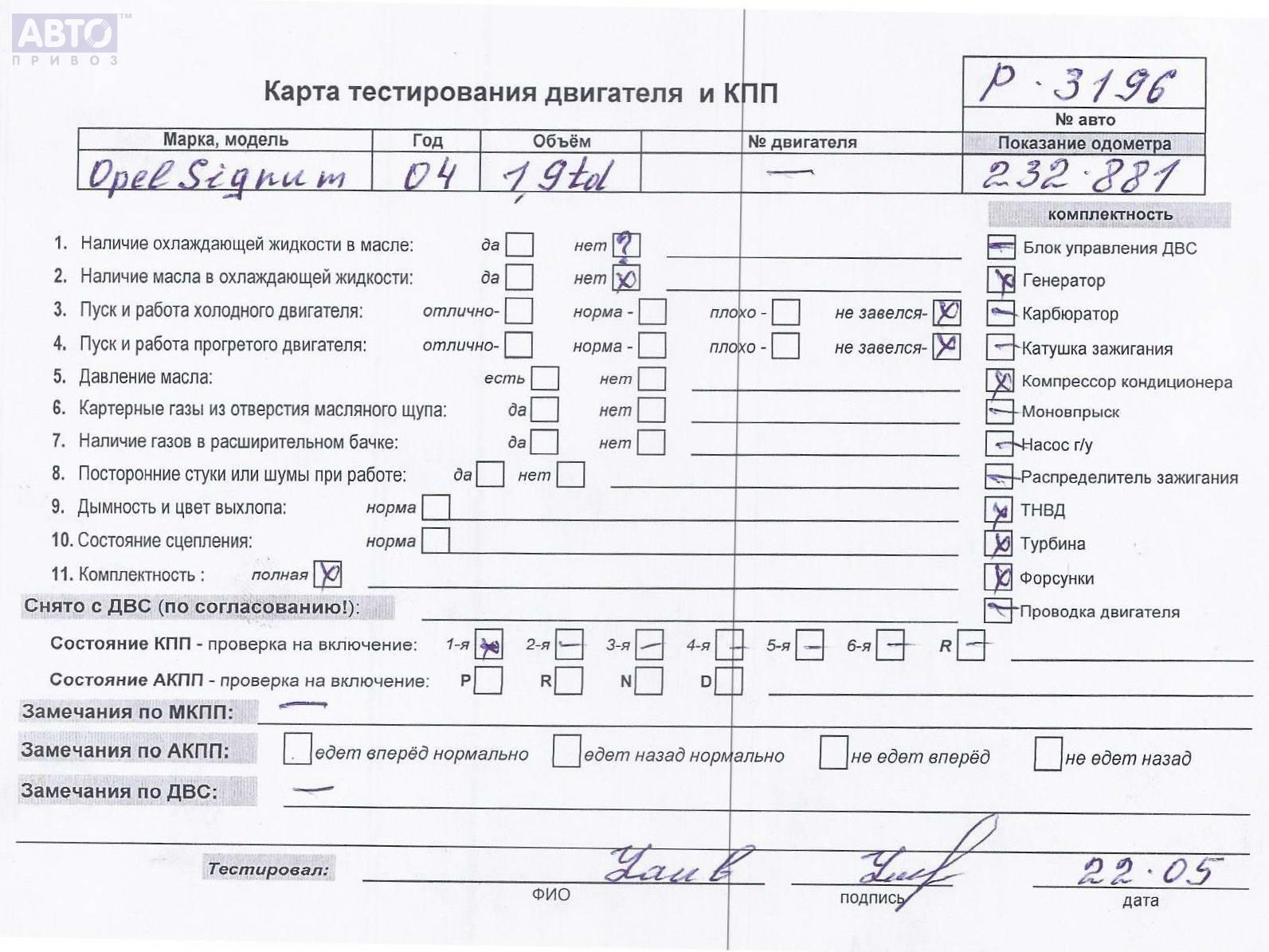 | Марка / Модель / Год: | Opel Signum (2003-2008) 2006 |