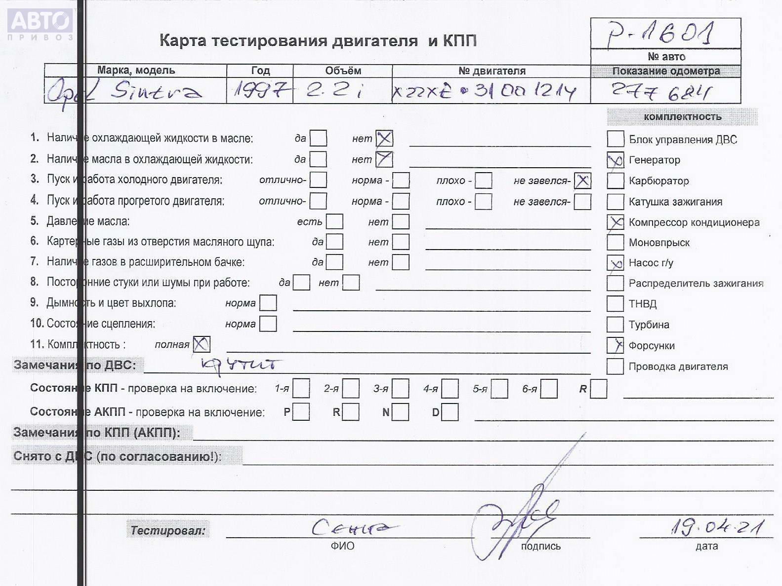 | Марка / Модель / Год: | Opel Sintra (1997-1999) 1997 |