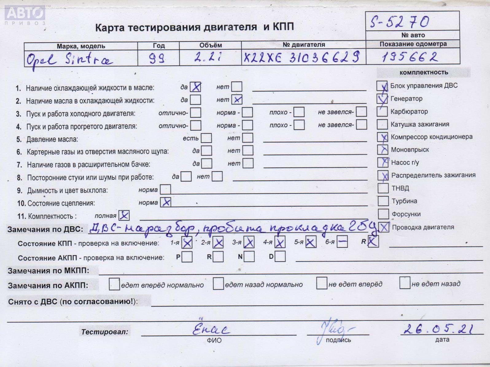 | Марка / Модель / Год: | Opel Sintra (1997-1999) 1999 |