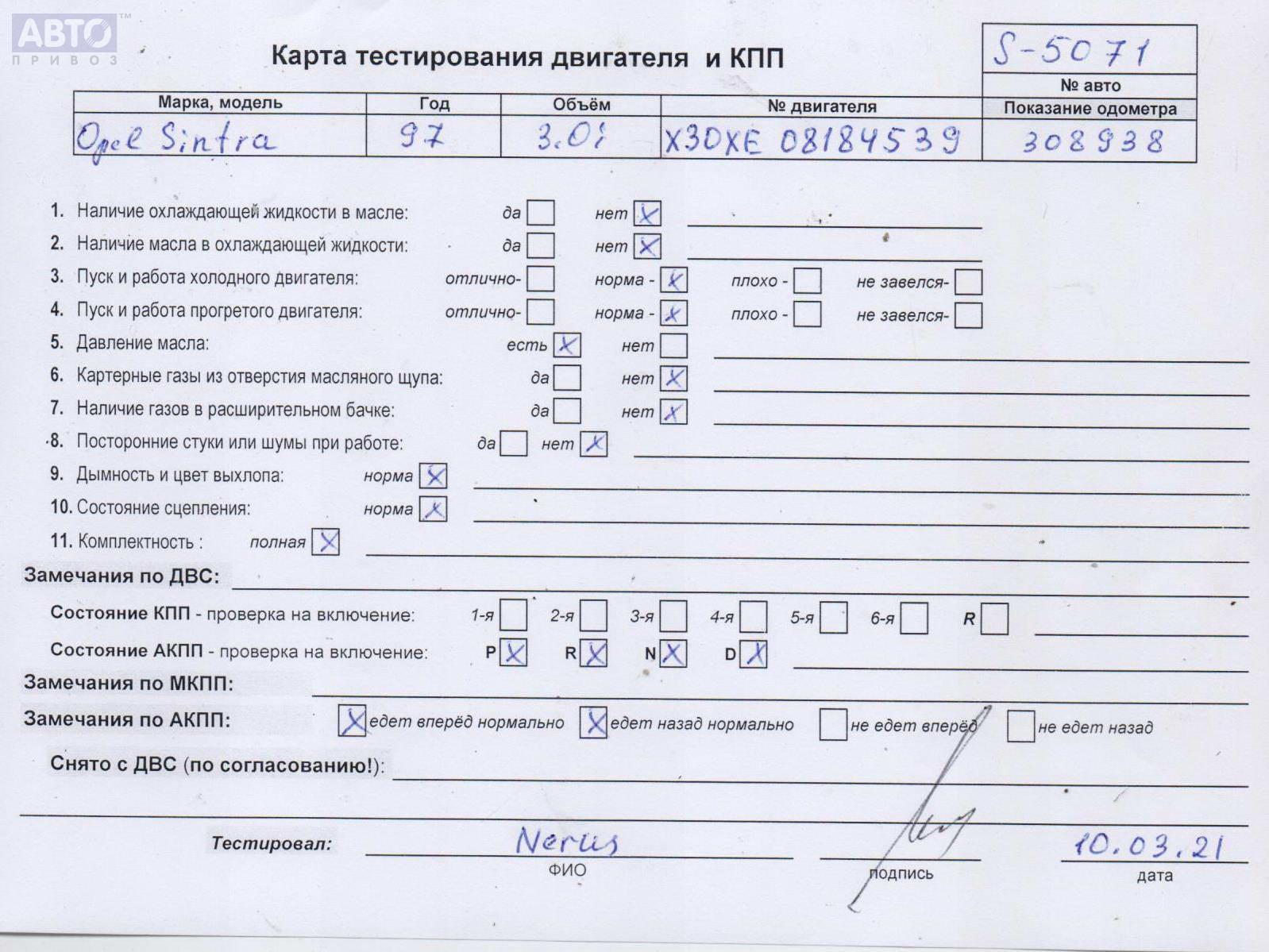 | Марка / Модель / Год: | Opel Sintra (1997-1999) 1997 |