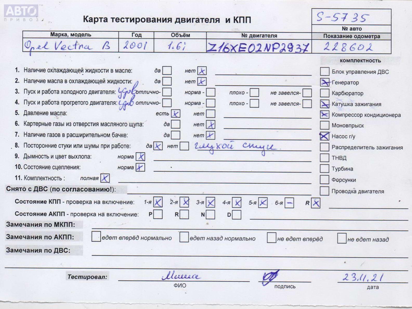 | Марка / Модель / Год: | Opel Vectra B (1995-2002) 2001 |