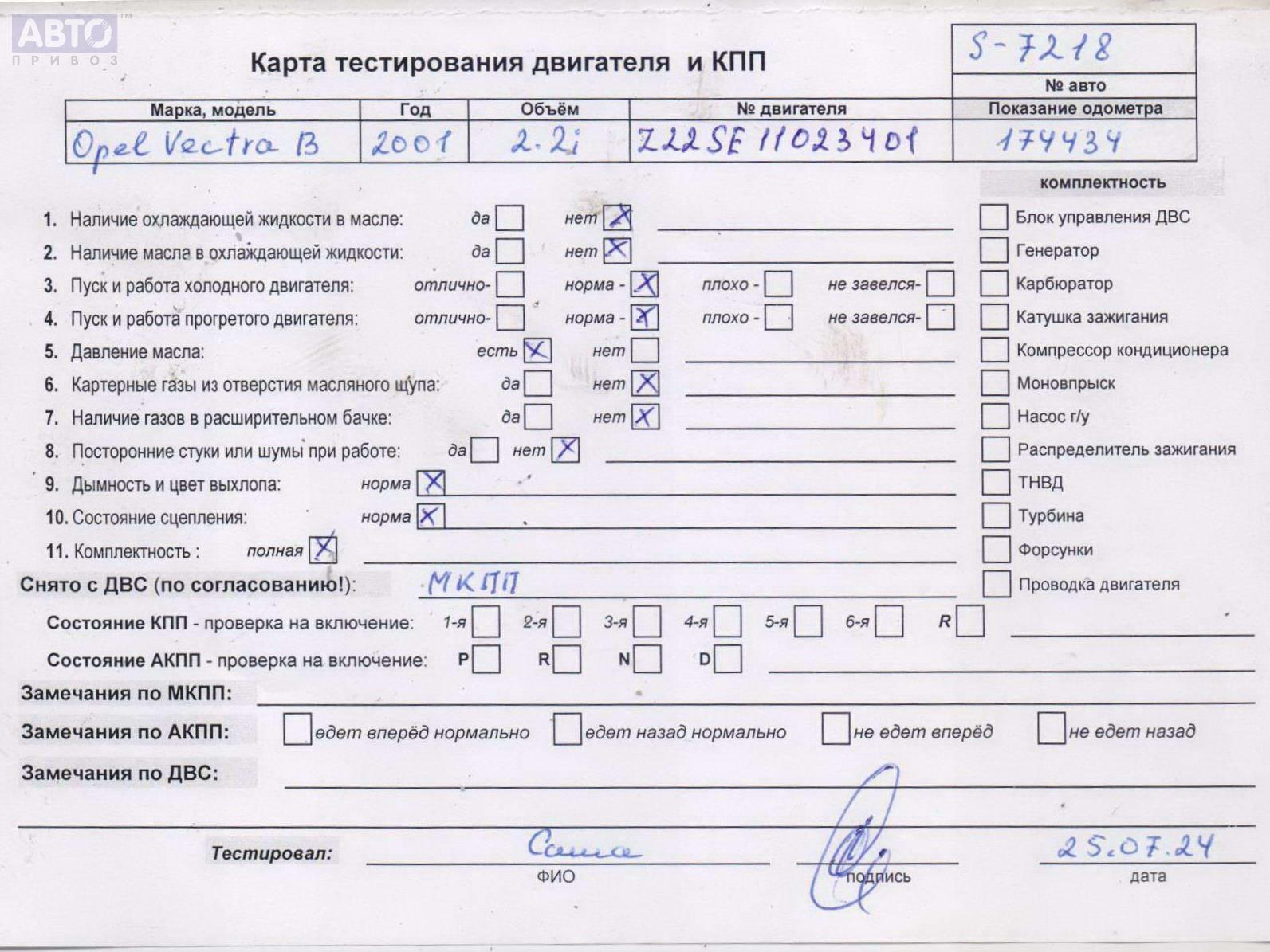 | Марка / Модель / Год: | Opel Vectra B (1995-2002) 2001 |