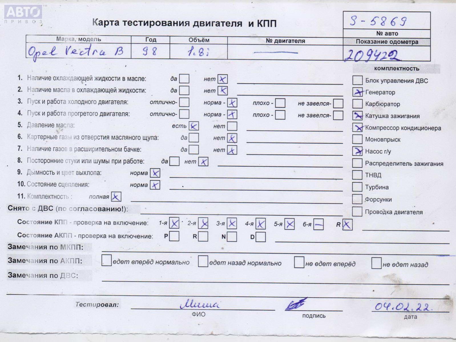 | Марка / Модель / Год: | Opel Vectra B (1995-2002) 1999 |