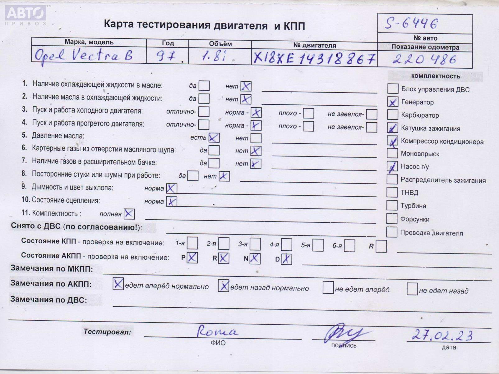 | Марка / Модель / Год: | Opel Vectra B (1995-2002) 1997 |