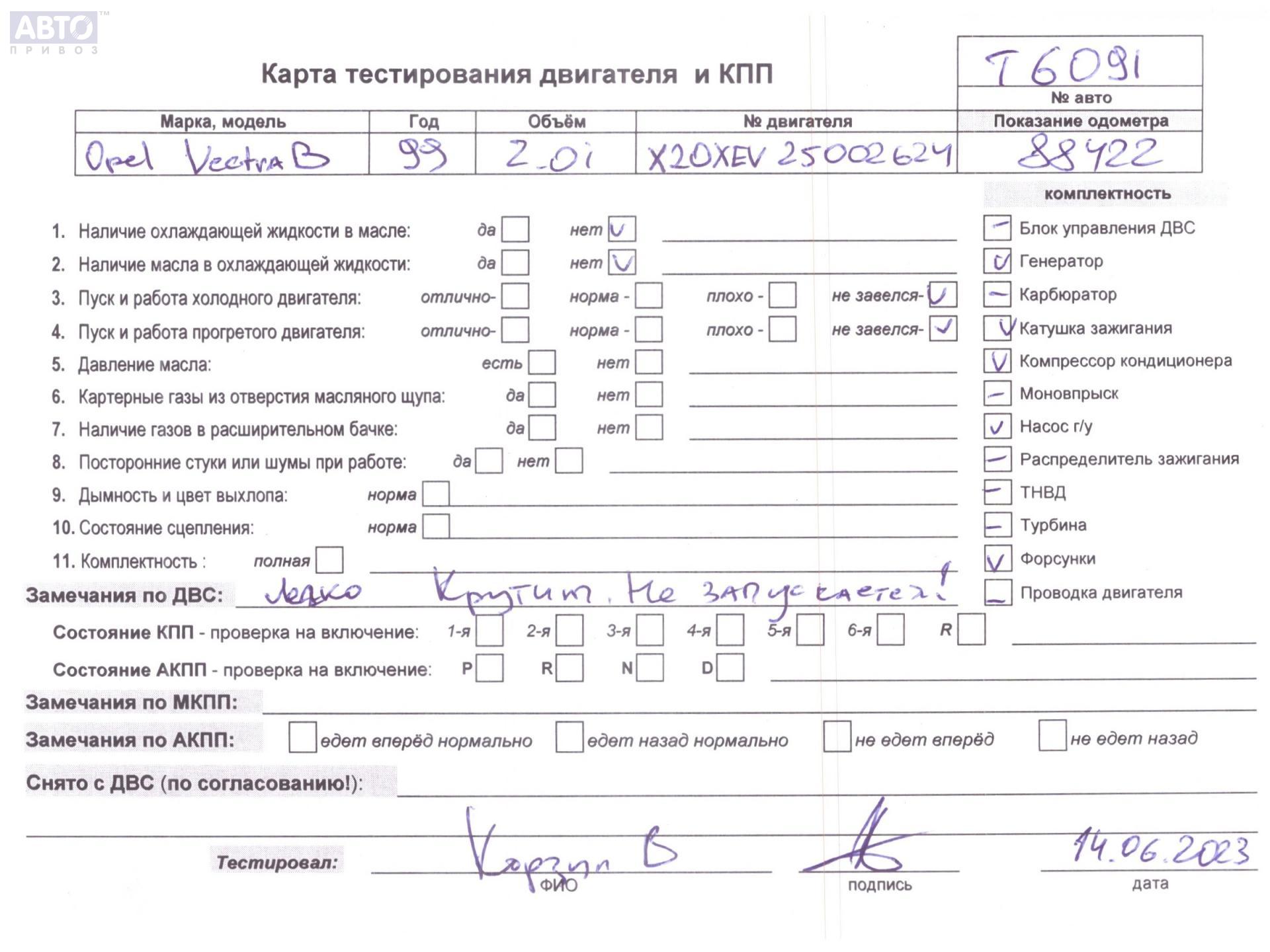 | Автомобиль / VIN: | T6091 W0L0JBF19X1183944 |