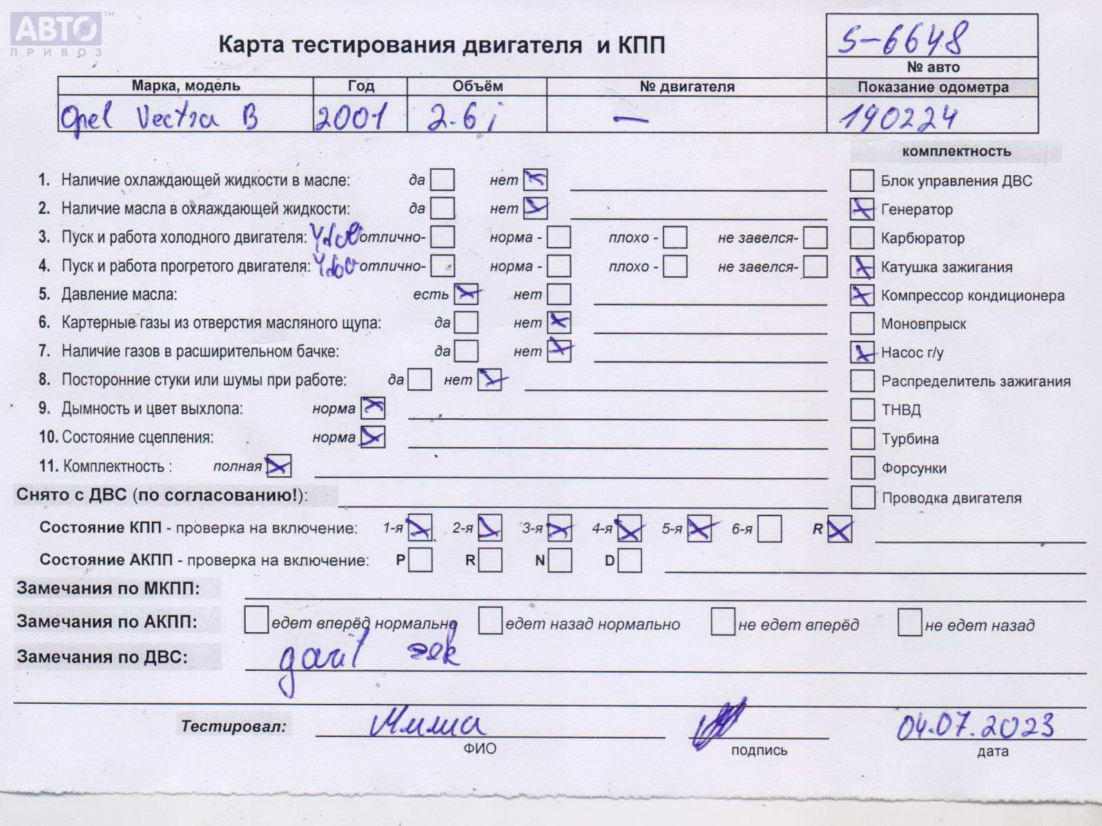 | Марка / Модель / Год: | Opel Vectra B (1995-2002) 2001 |